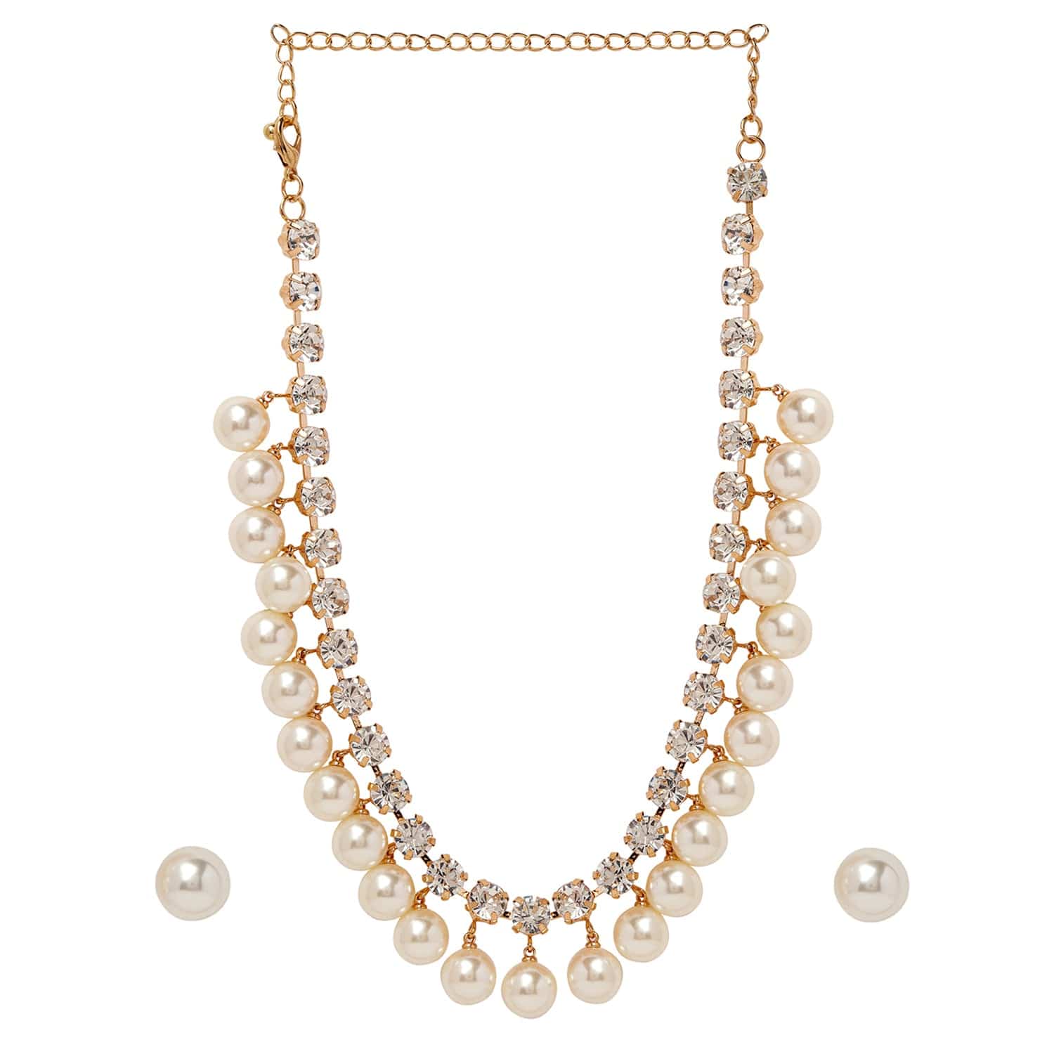 18K Gold Plated Luxurious Pearl & Zirconia Studded Statement Necklace Set