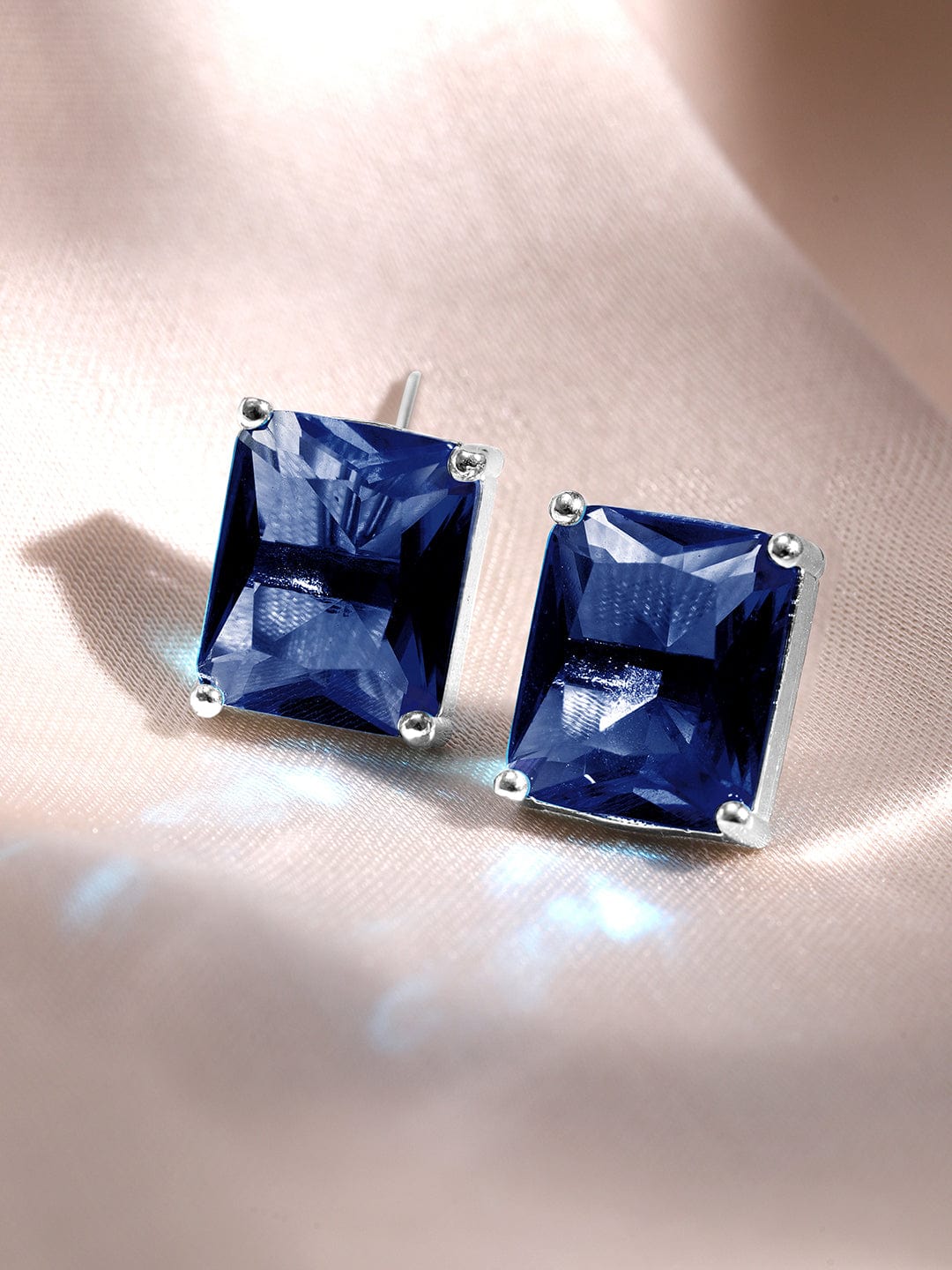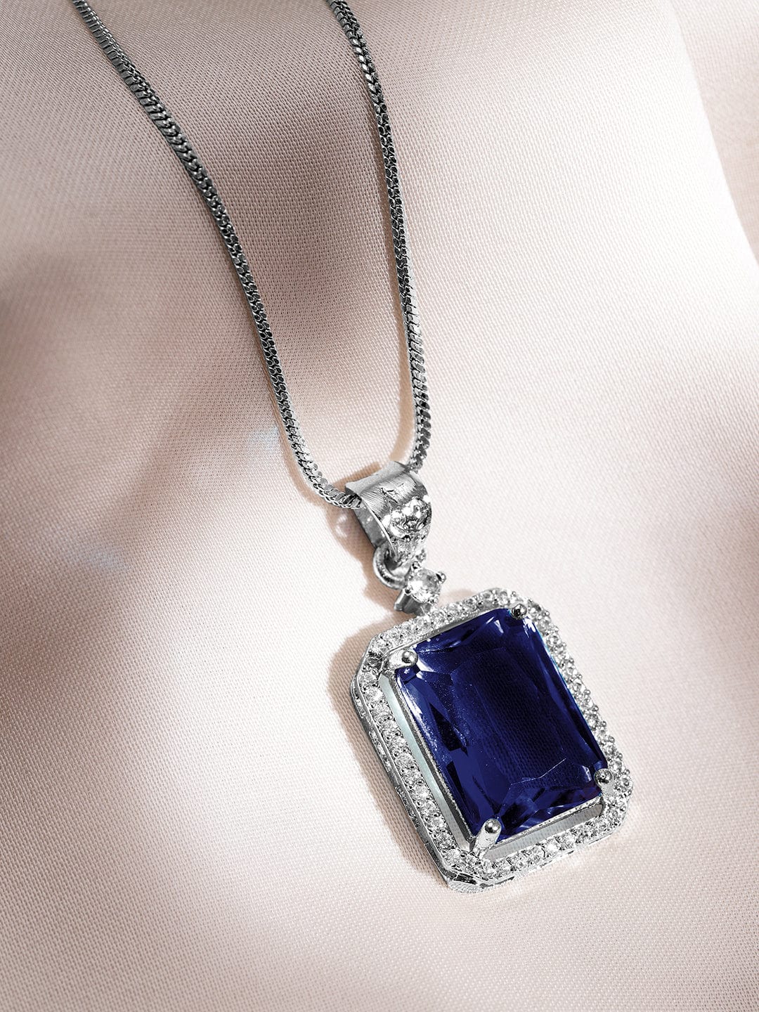 Luxurious Rhodium-Plated Blue Sapphire & CZ Studded Pendant Necklace Set