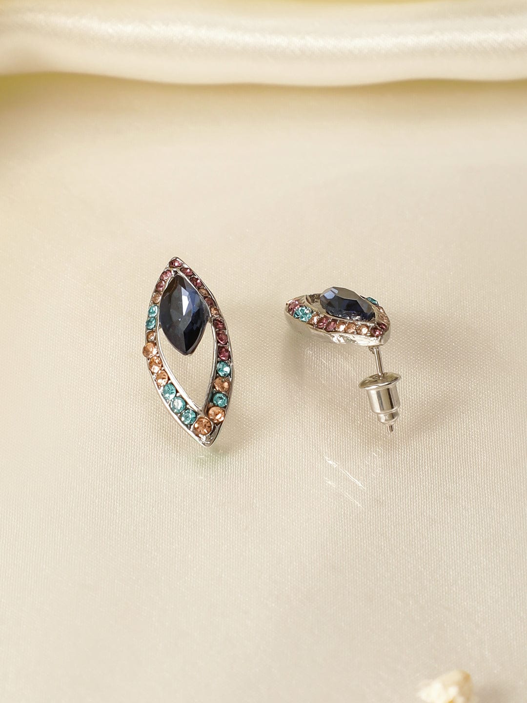 Jewellery Set : This stunning Rubans statement necklace set is rhodium-plated, featuring a mix of blue, white, and multicolor cubic zirconia gemstones in elegant marquise shapes. The intricate design offers a luxurious feel, paired with matching earrings for a complete and glamorous look.