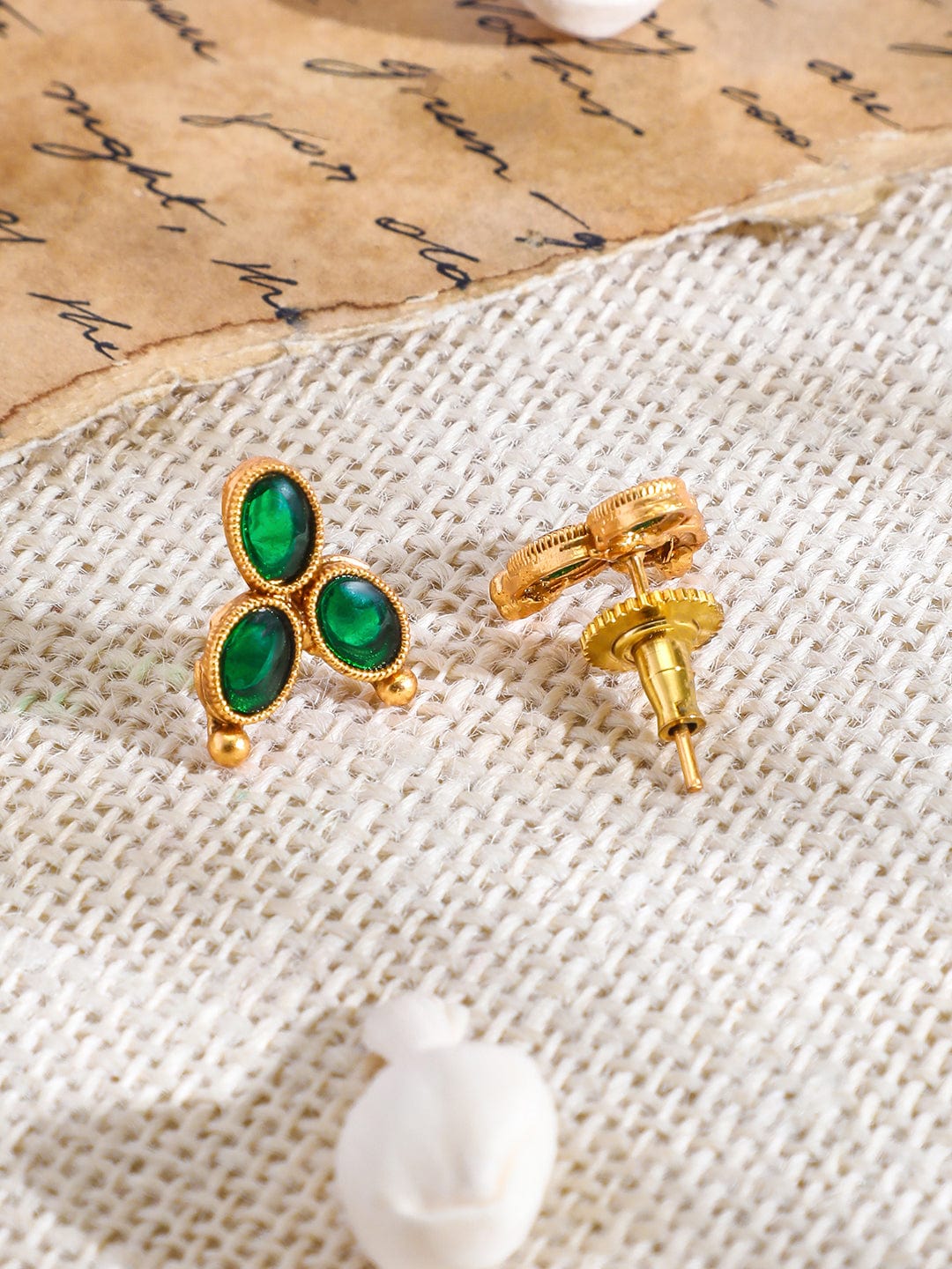 Rubans 18K Gold-Plated Emerald Studded Traditional Necklace Set