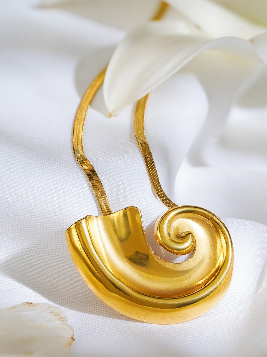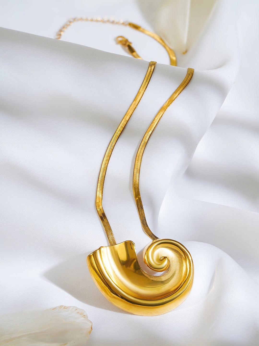 Necklace & Chains: Elevate your neckline with this shell-inspired 18K gold-plated necklace by Rubans, crafted in stainless steel with a sculpted pendant and waterproof finish for effortless daily-to-party transitions.