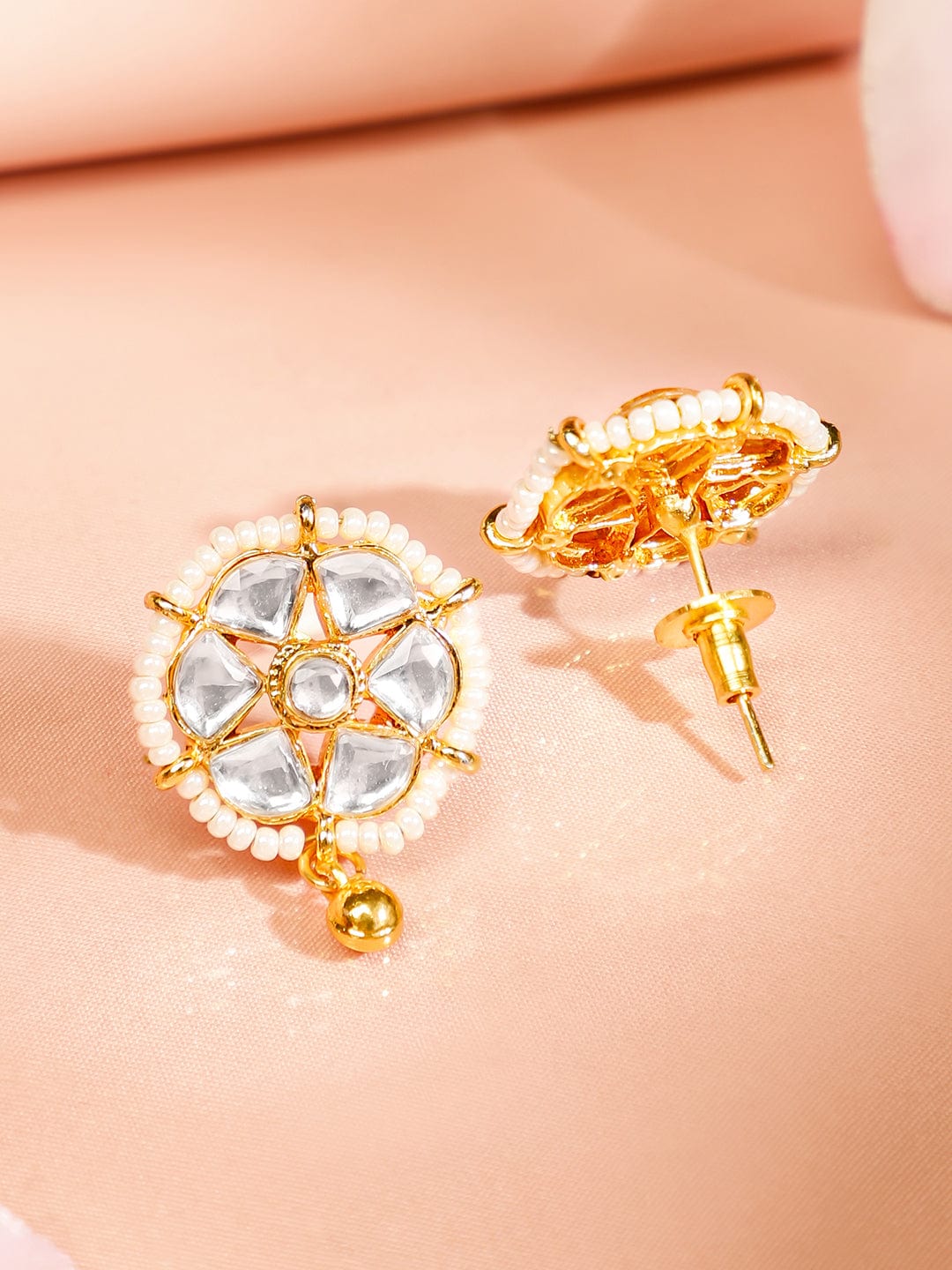 Rubans 18K Gold-Plated White Kundan Studded Choker Necklace Set with Gold Beaded Detailing