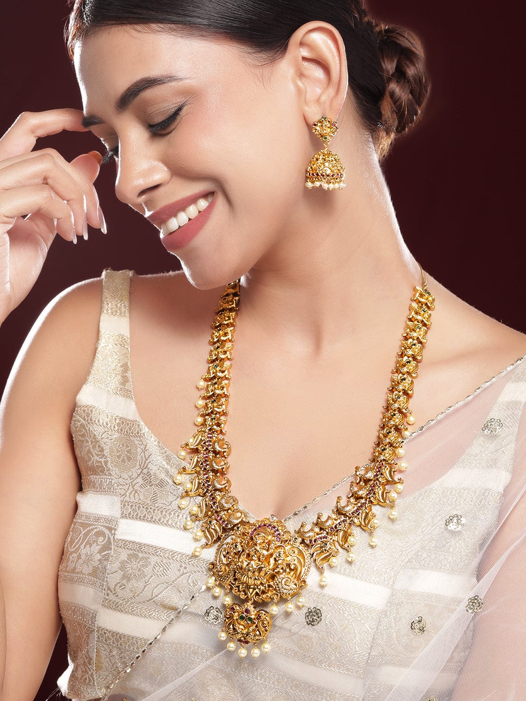 Rubans 22K Gold-Plated Cubic Zicronia Divin Lakshmi Temple Necklace Set