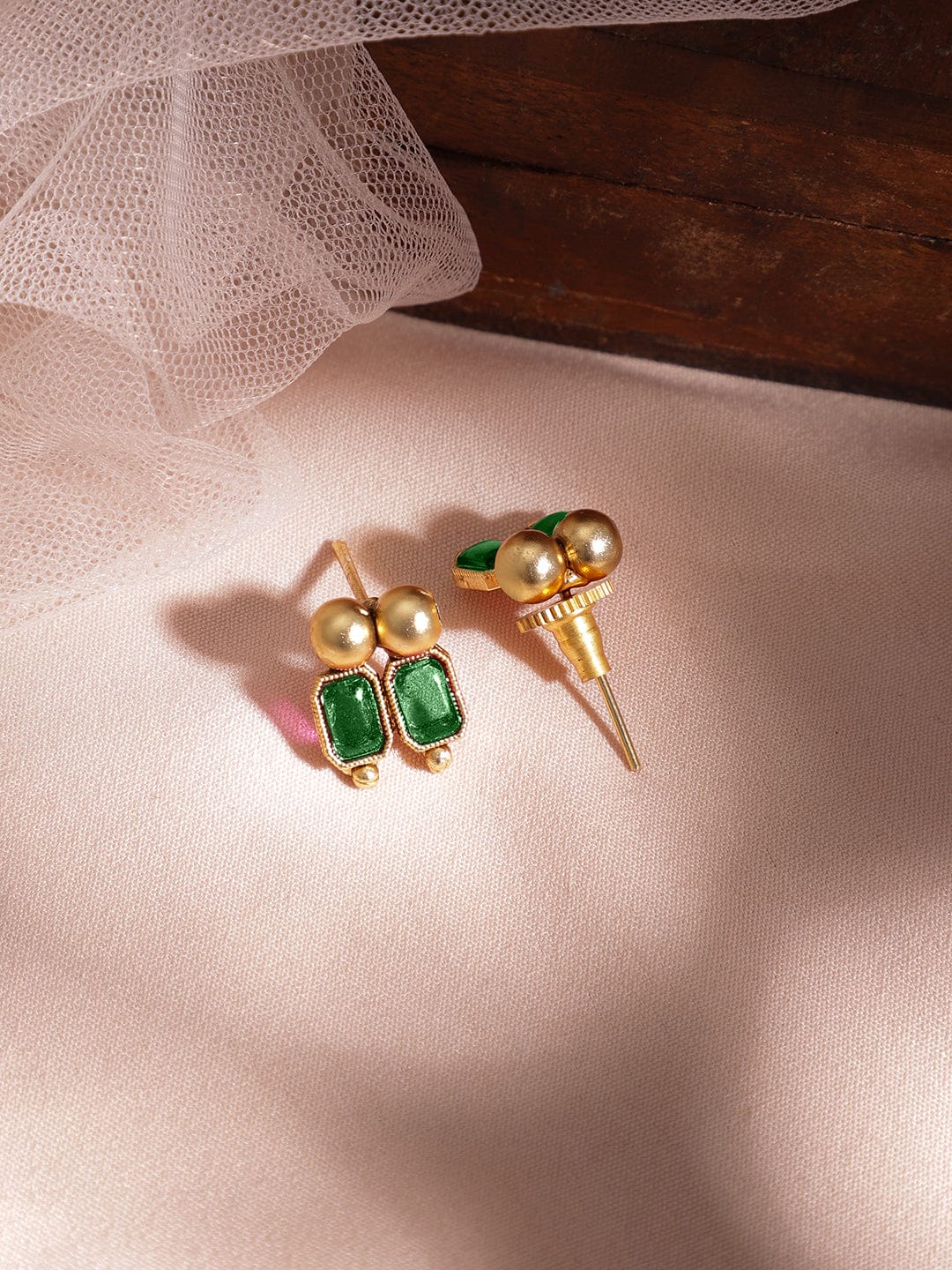 Rubans 22K Gold-Plated Emerald Green Stone Studded Traditional Necklace Set