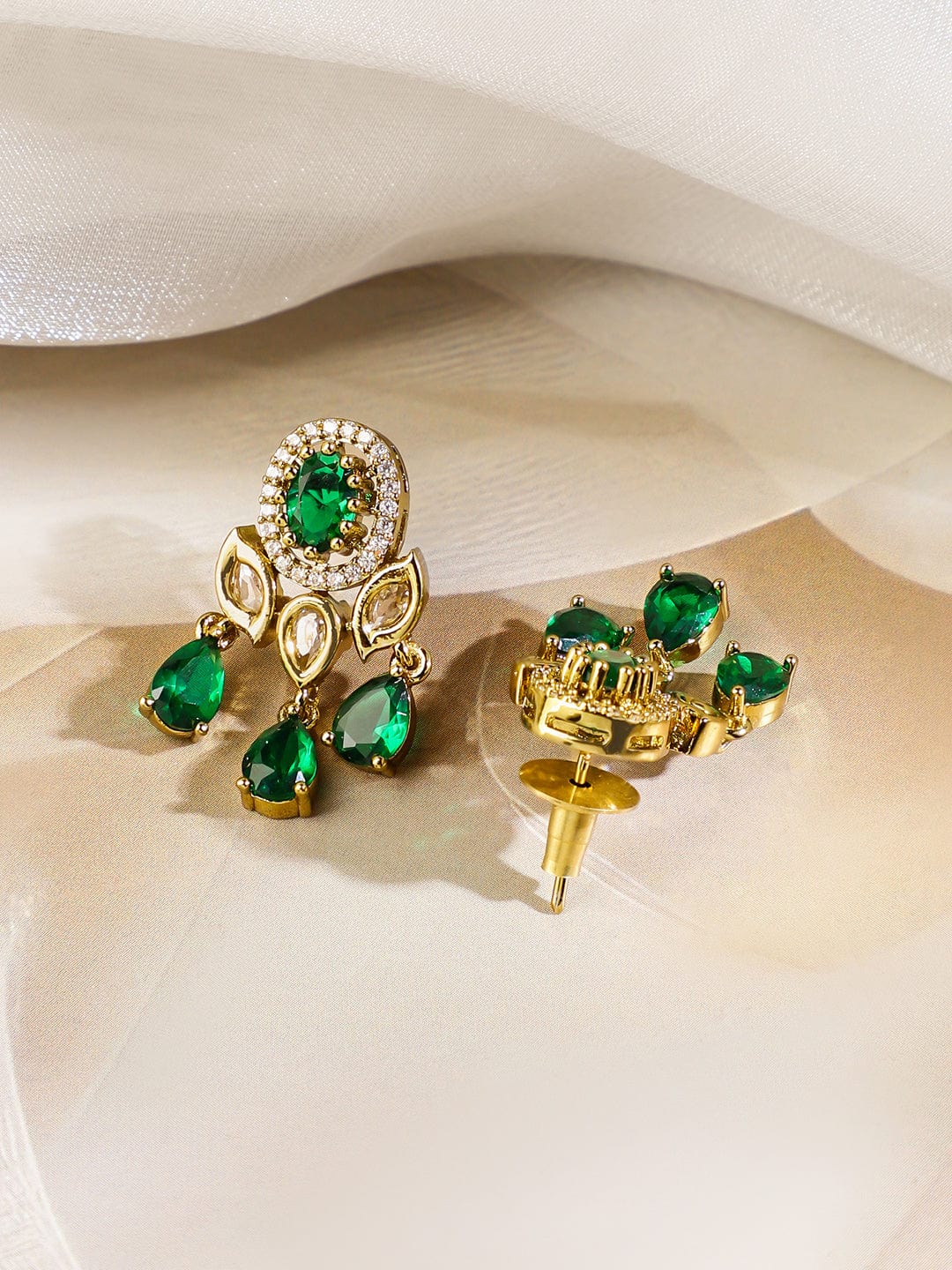 Rubans 22K Gold-Plated Handcrafted Choker Necklace Set with Emerald Green Cubic Zirconia & Off-White Beads