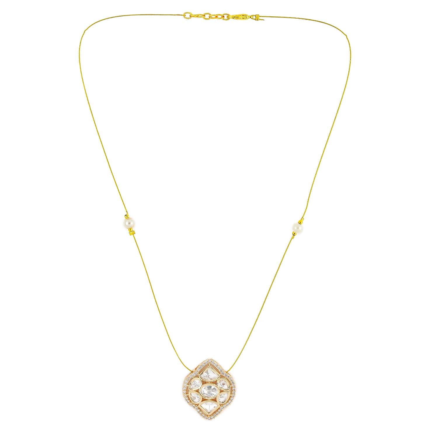 Rubans 22K Gold-Plated Kundan & Cubic Zirconia Pendant Necklace with Pearl Detailing