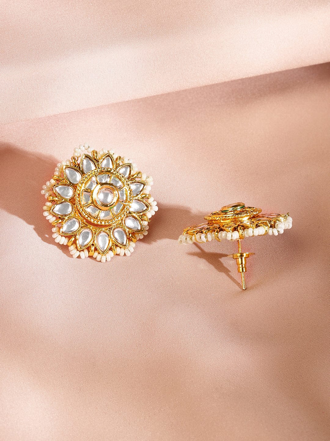Rubans 22K Gold-Plated Kundan Studded & Pearl Beaded Handcrafted Choker Necklace Set