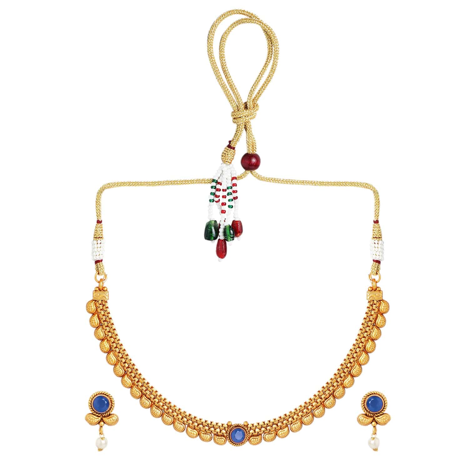 Rubans 22K Gold-Plated Blue Sapphire & Pearl Beaded Traditional Necklace Set