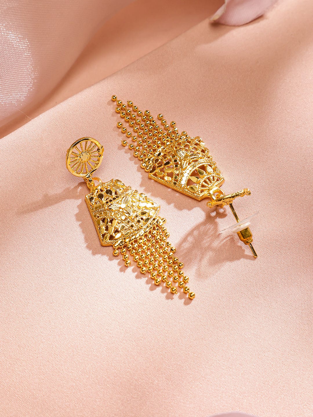 Rubans 18K Gold-Plated Handcrafted Mesh Chain Statement Necklace Set with Cascading Fringe Design for Women