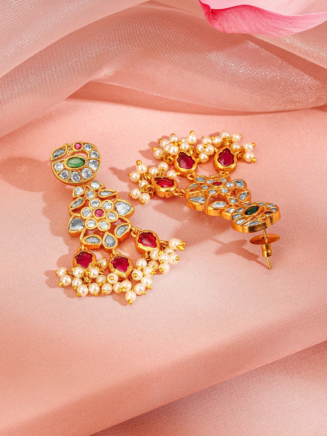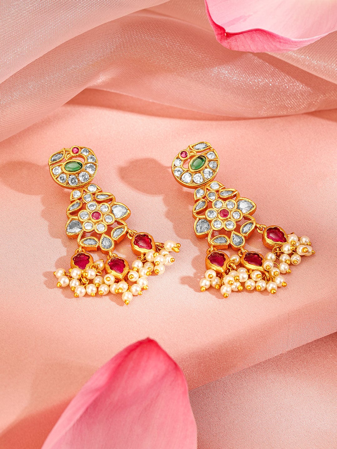 Rubans 24K Gold-Plated Emerald & Ruby Studded Pearl Beaded Handcrafted Choker Necklace Set