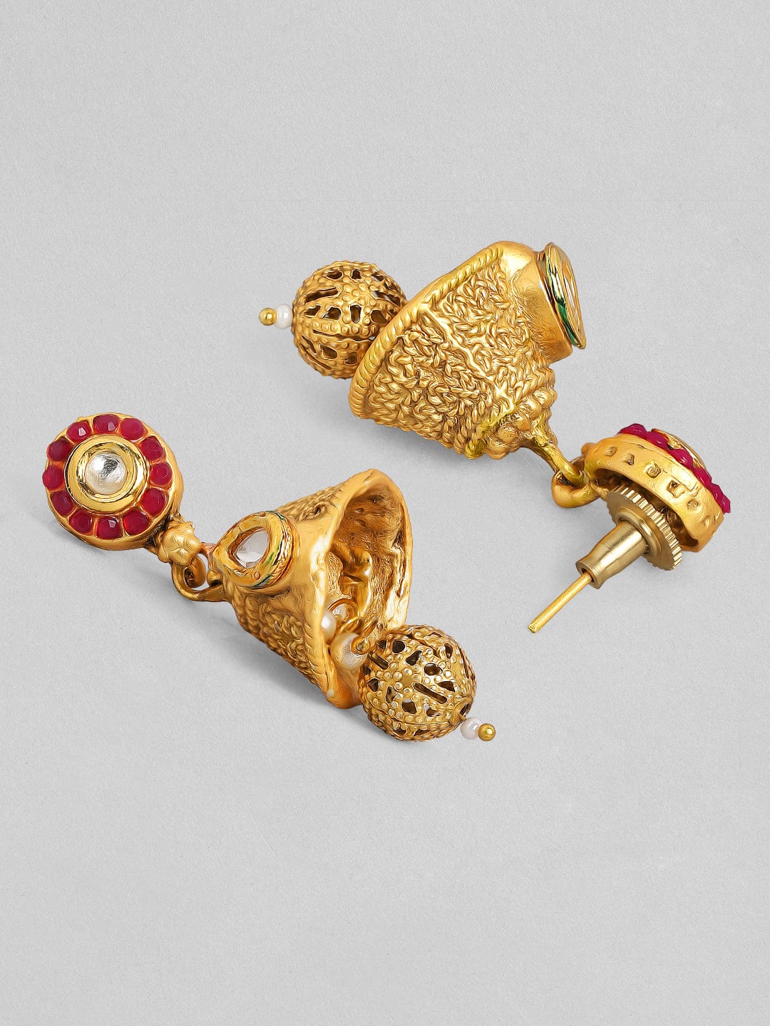 Rubans 24K Gold Plated Handcrafted White Kundan & Antique Gold Filigree Beads Necklace Set