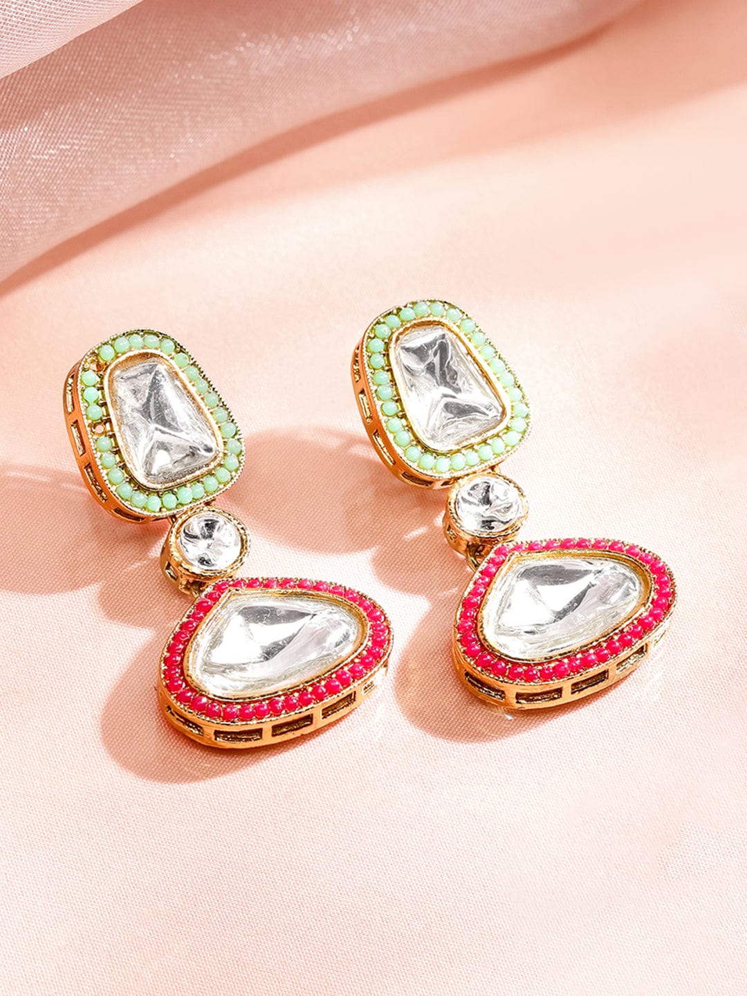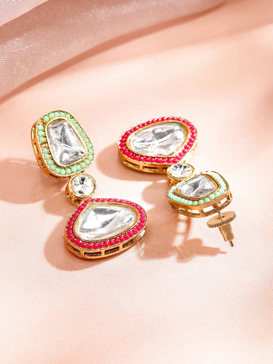 Rubans 24K Gold-Plated Multicolor Kundan Handcrafted Dual Layered Necklace Set