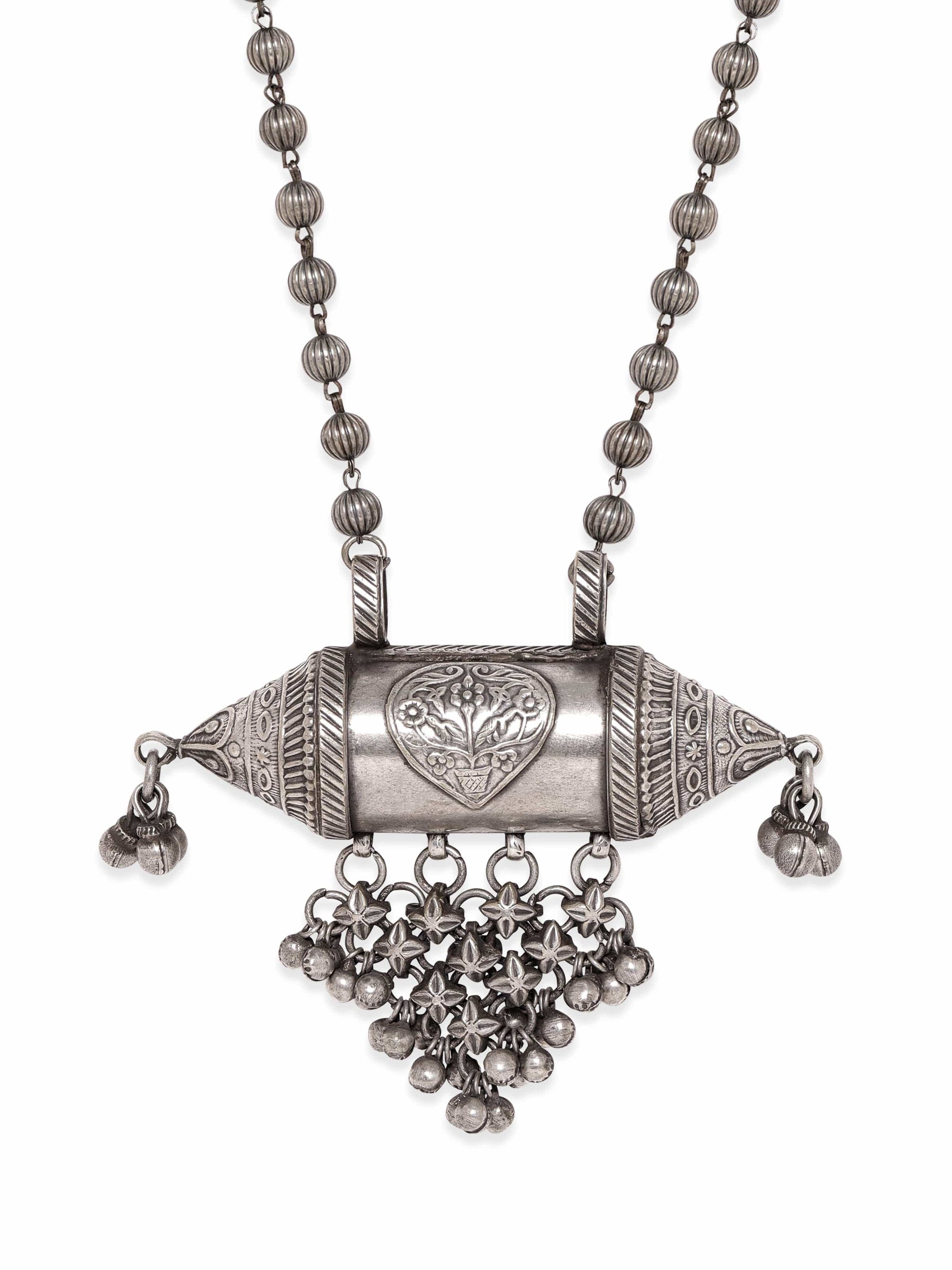 Rubans Bohemian Blossoms Oxidized Silver Plated Floral Necklace with Ghungroo Hangings