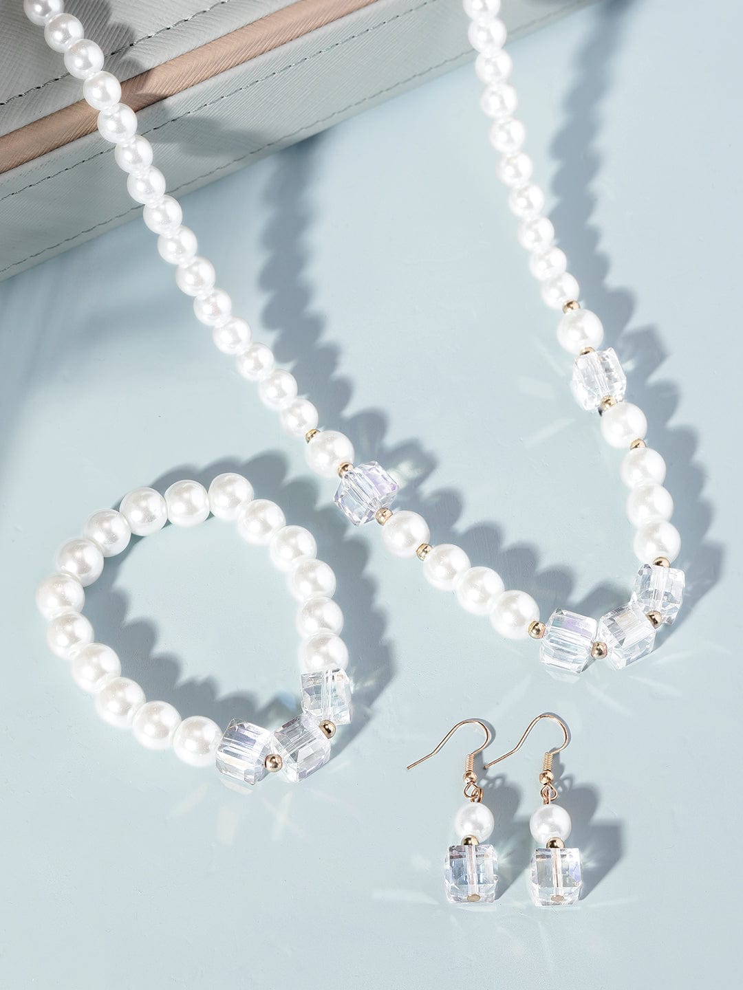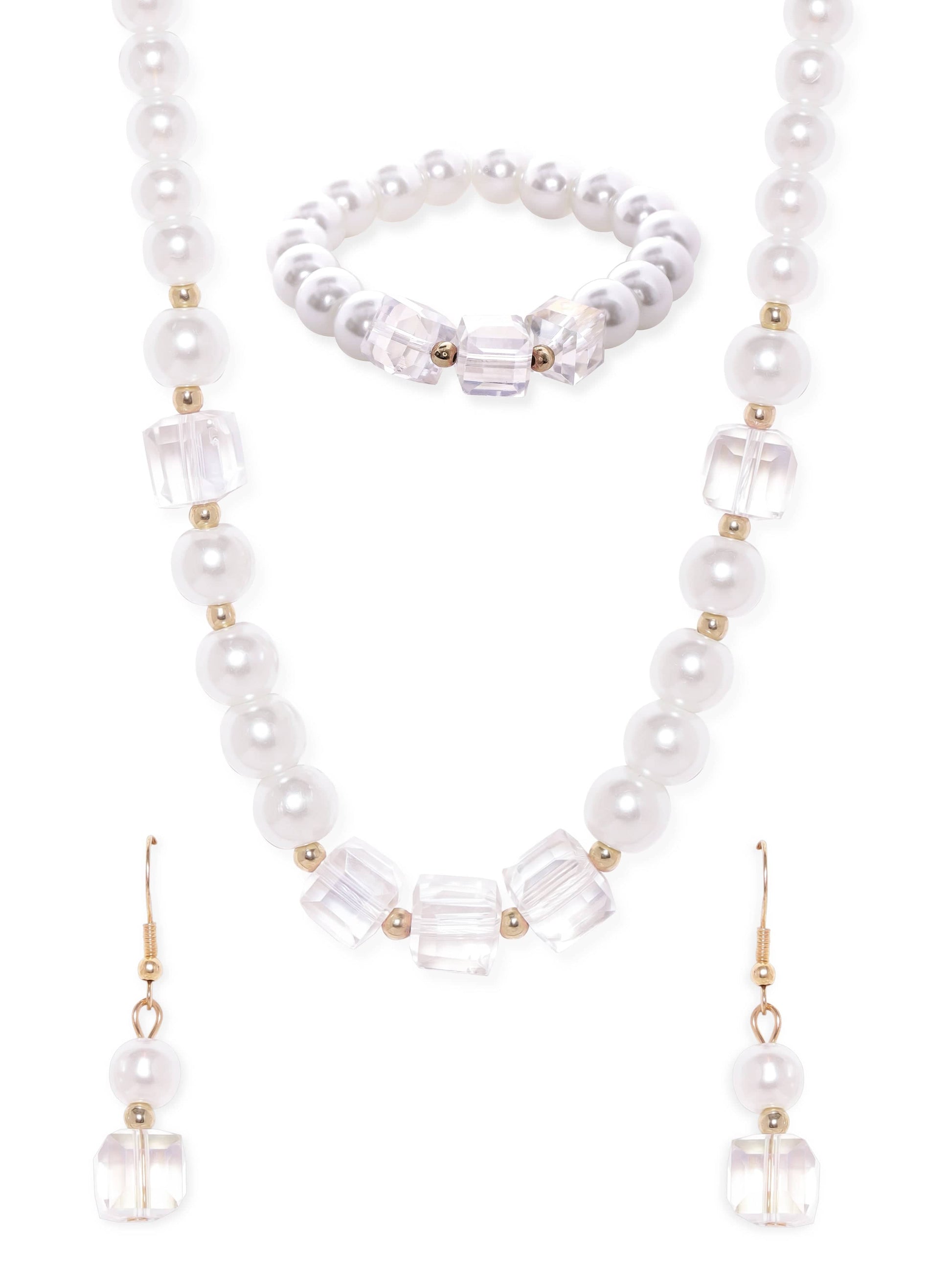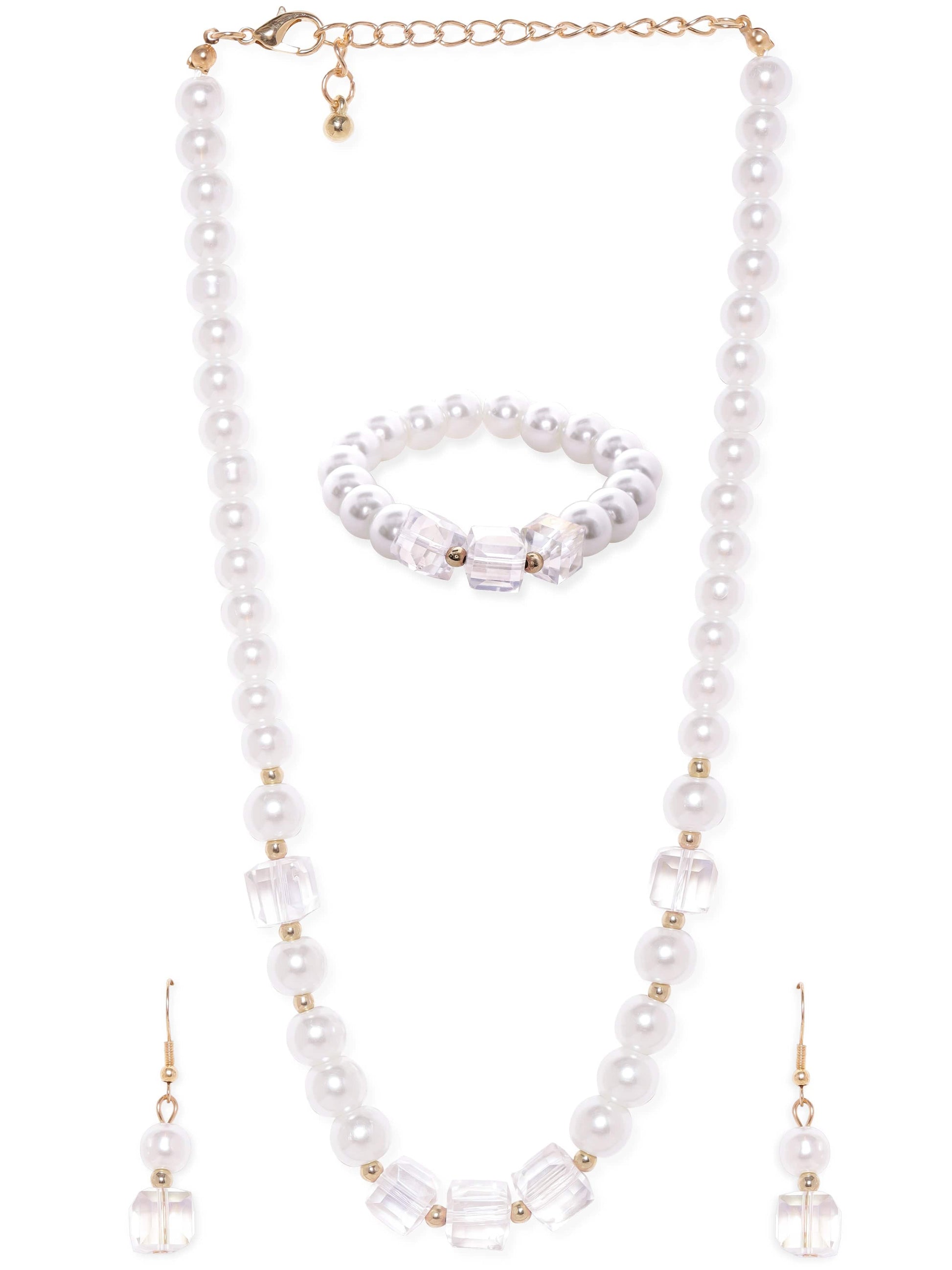 Rubans Cream Pearl & Crystal Beaded Classy Necklace Set