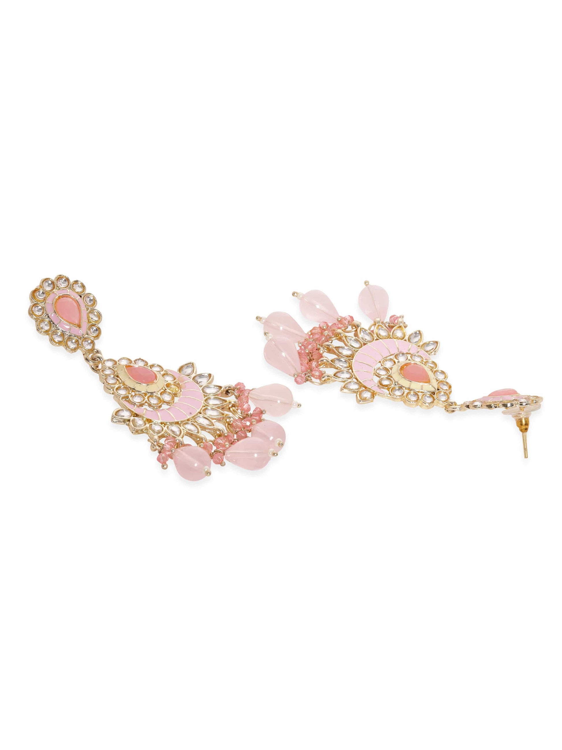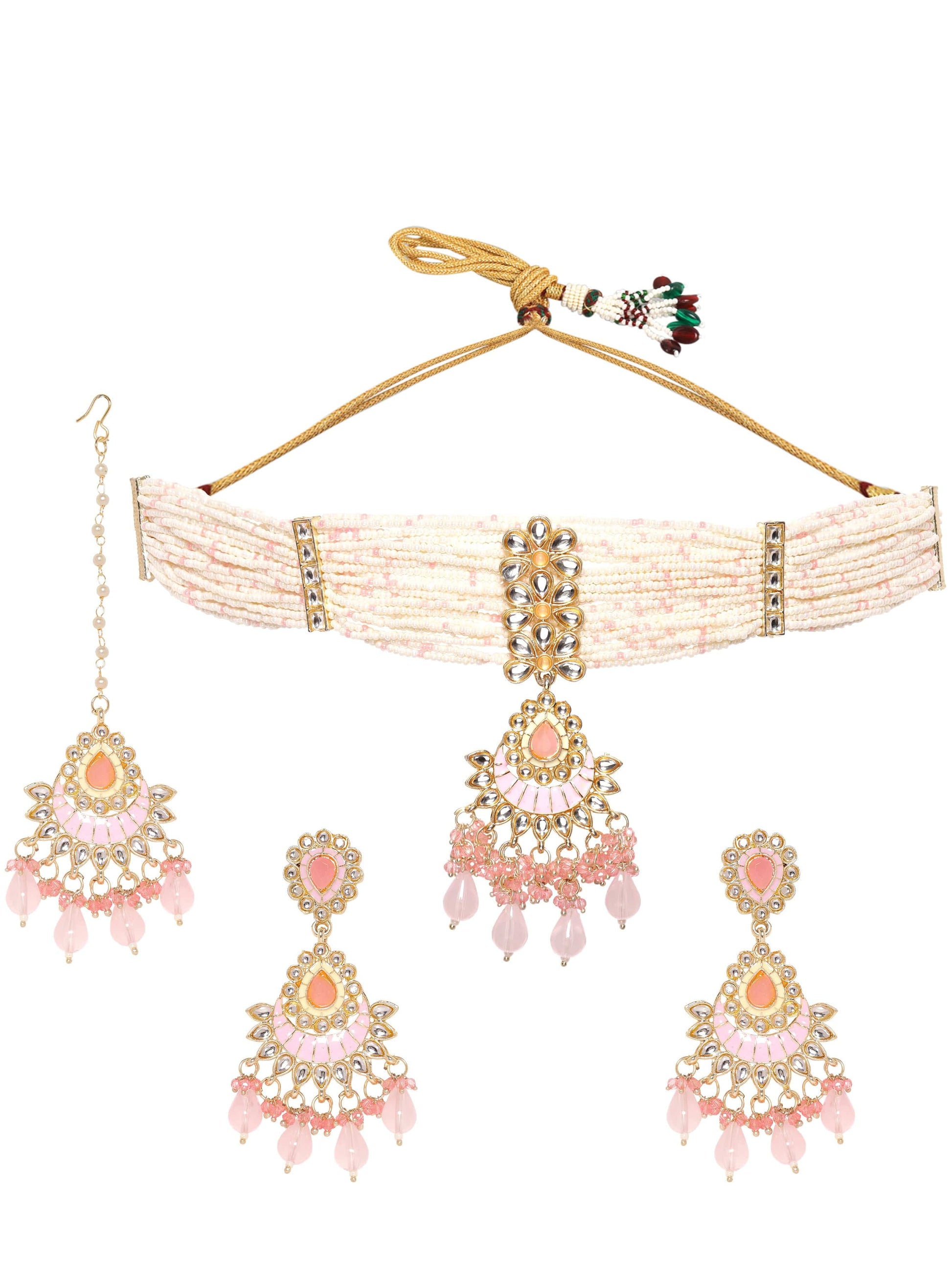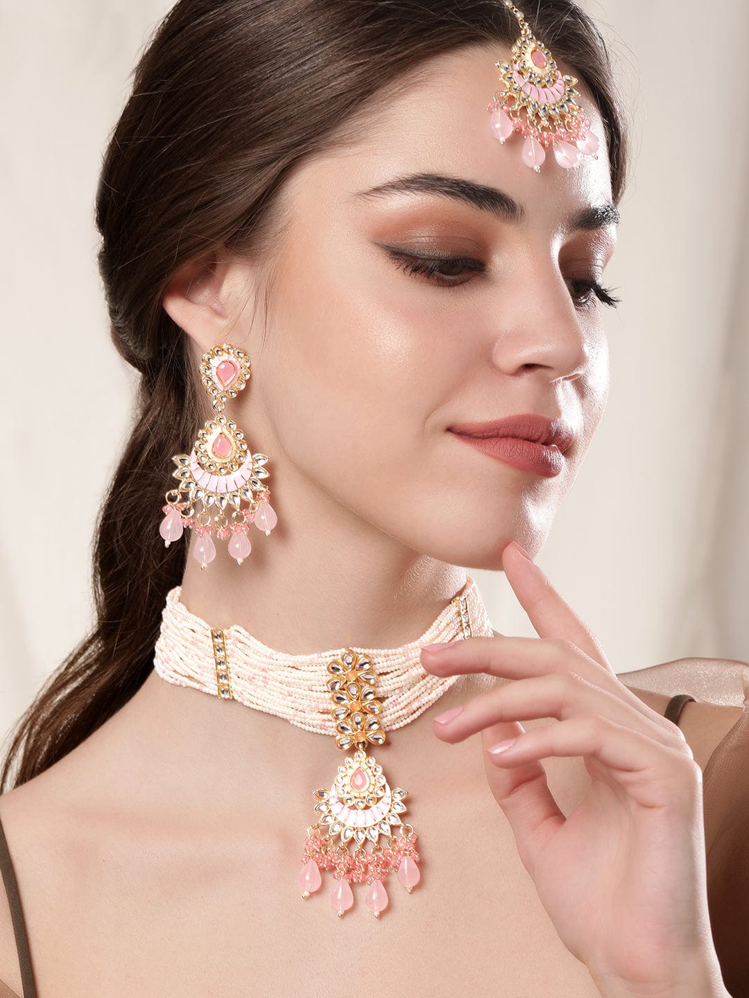 Rubans Enchanting Blush Pink Enamel Kundan Beaded Necklace Set
