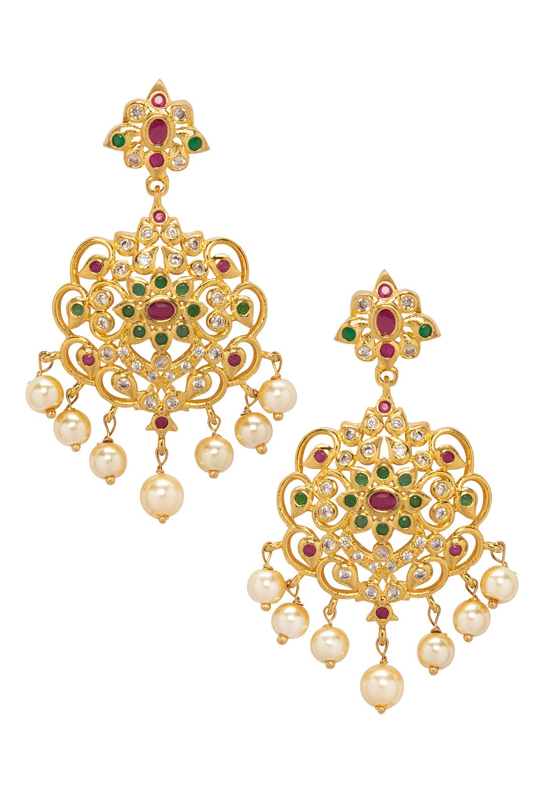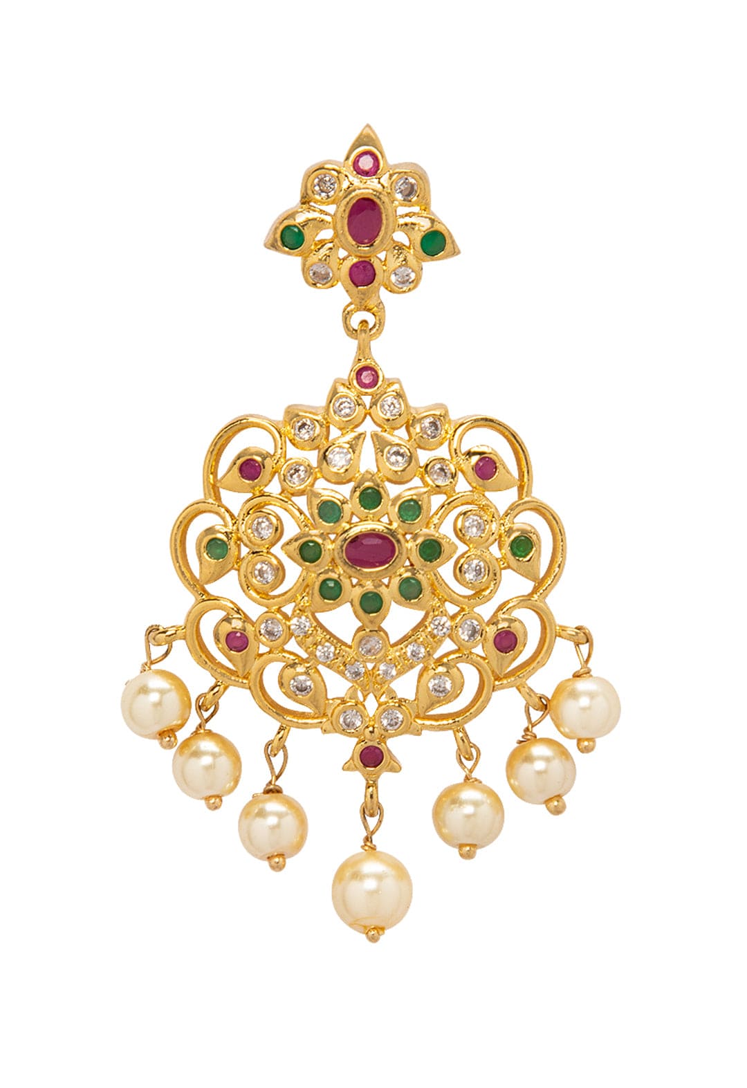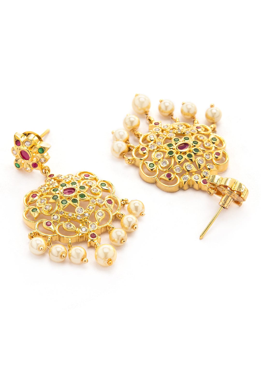 Rubans Gold Plated Hand Crafted Eligant Mutlti -Strand Temple Necklace Set