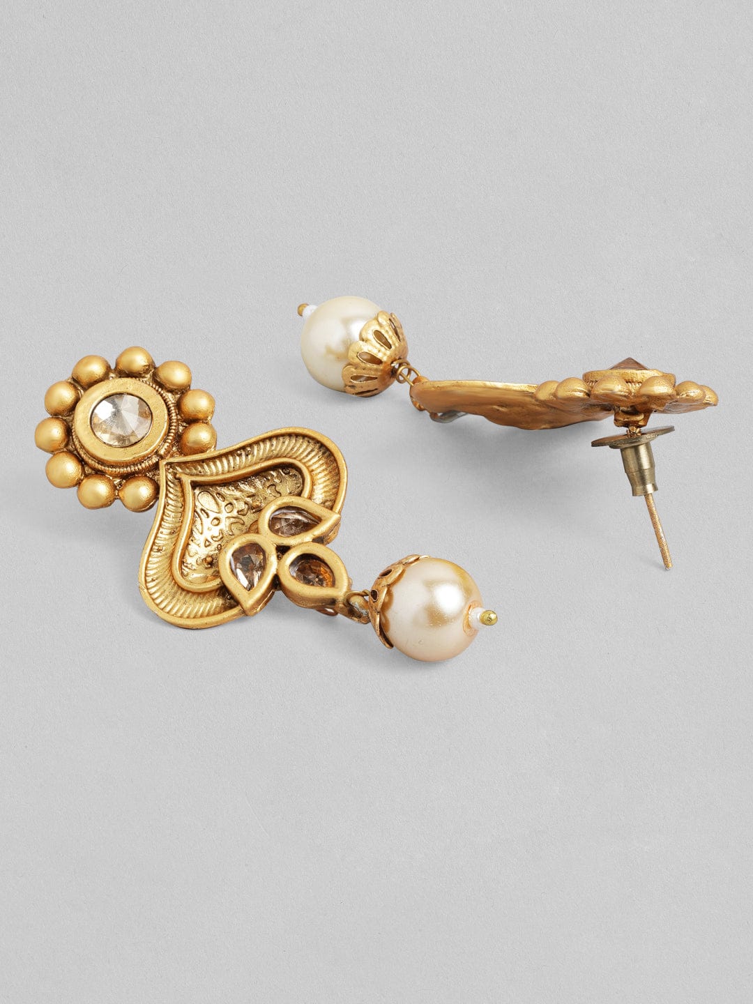 Rubans Gold Plated Handcrafted Kundan & white Beads Necklace Set