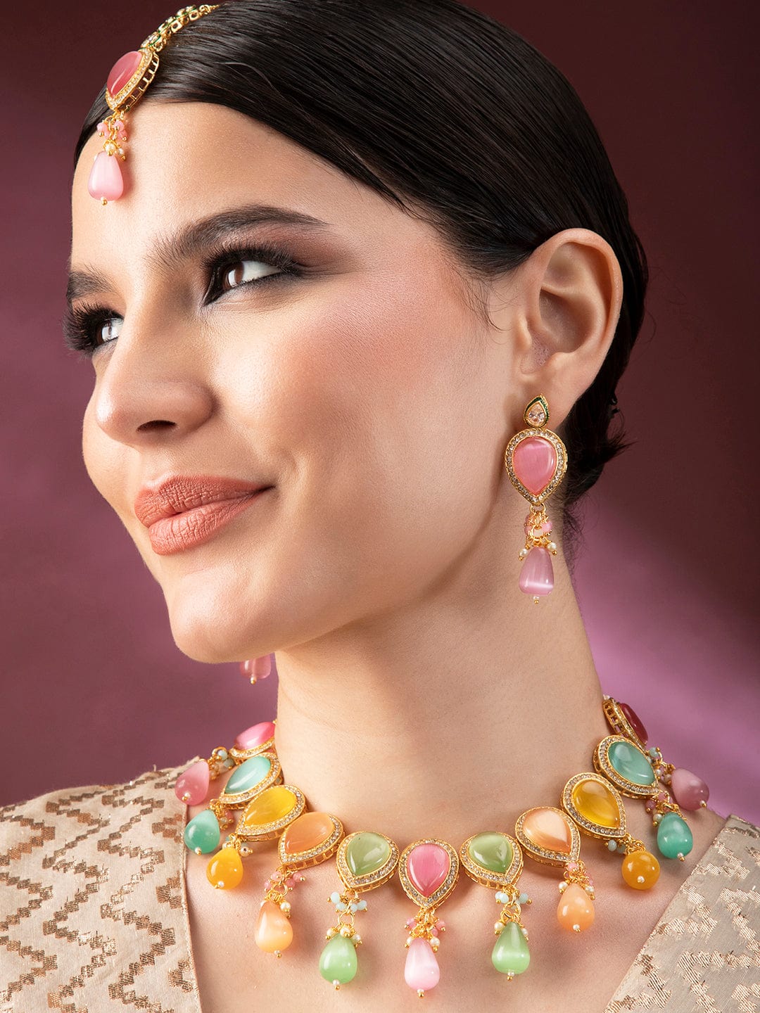 - Net Quantity: 1 Necklace, 1 Pair of Earrings, 1 Maang Tikka
