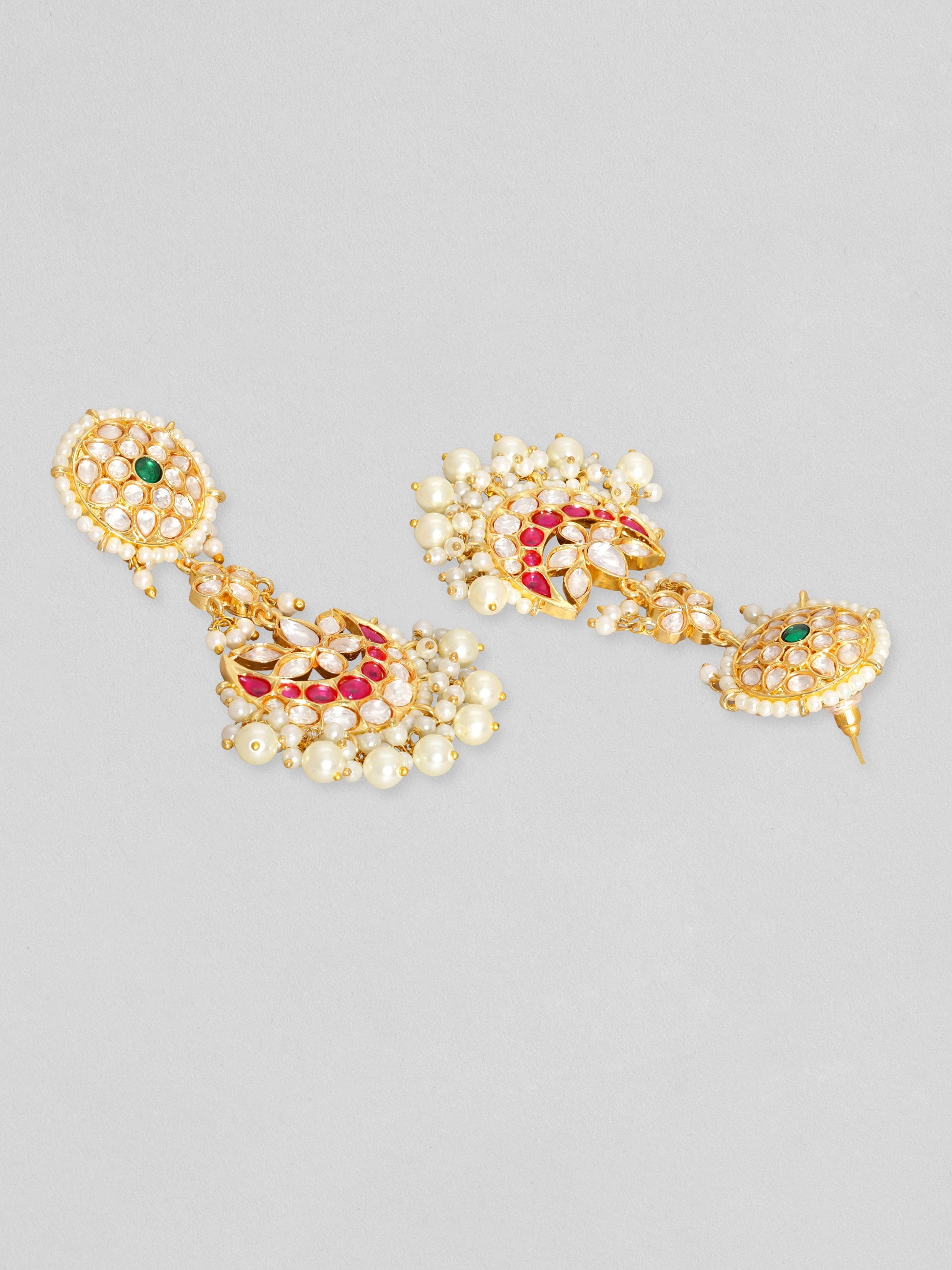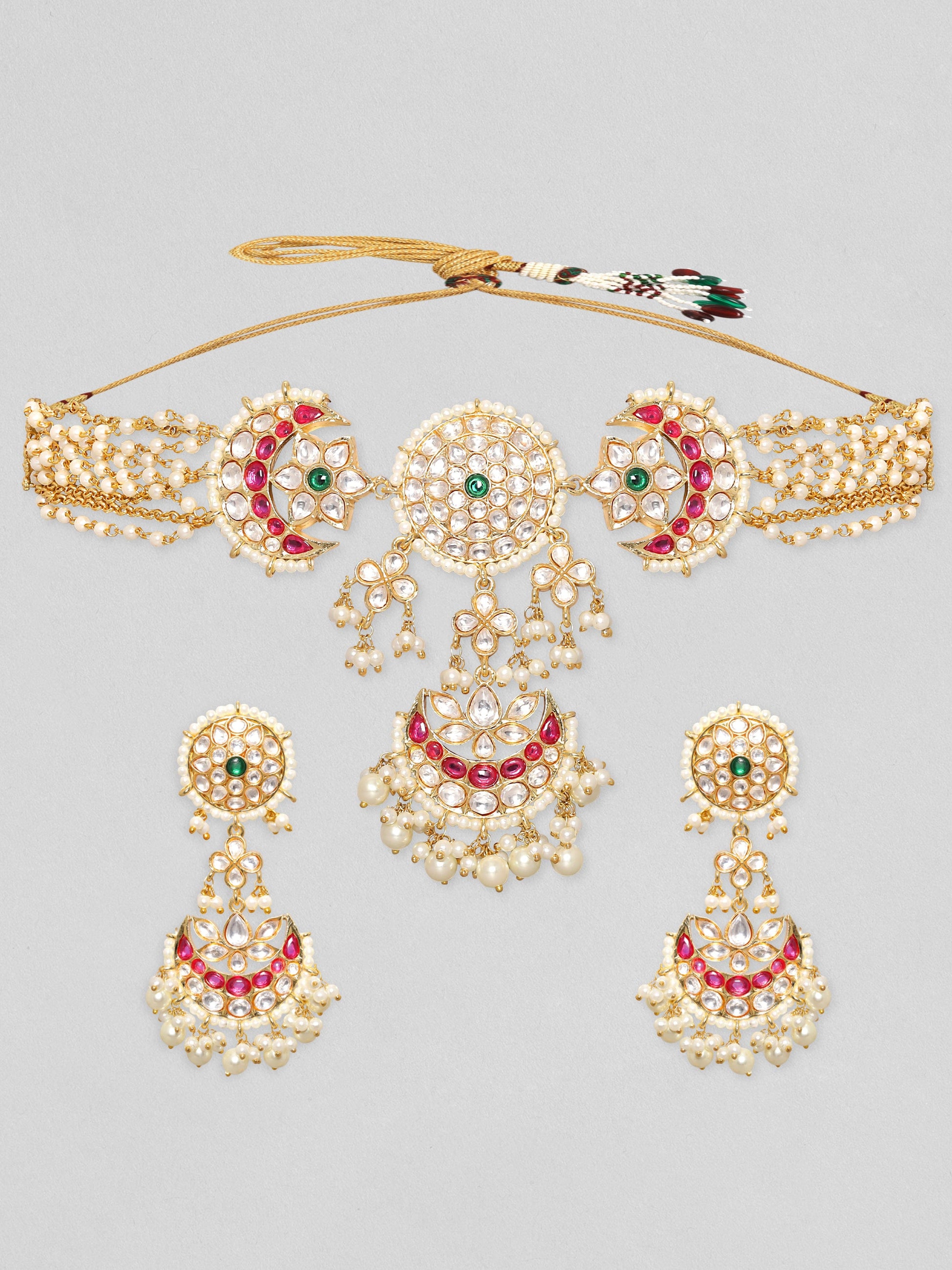 Rubans Gold Plated Polki Studded Red Enamel Beaded Choker Necklace Set
