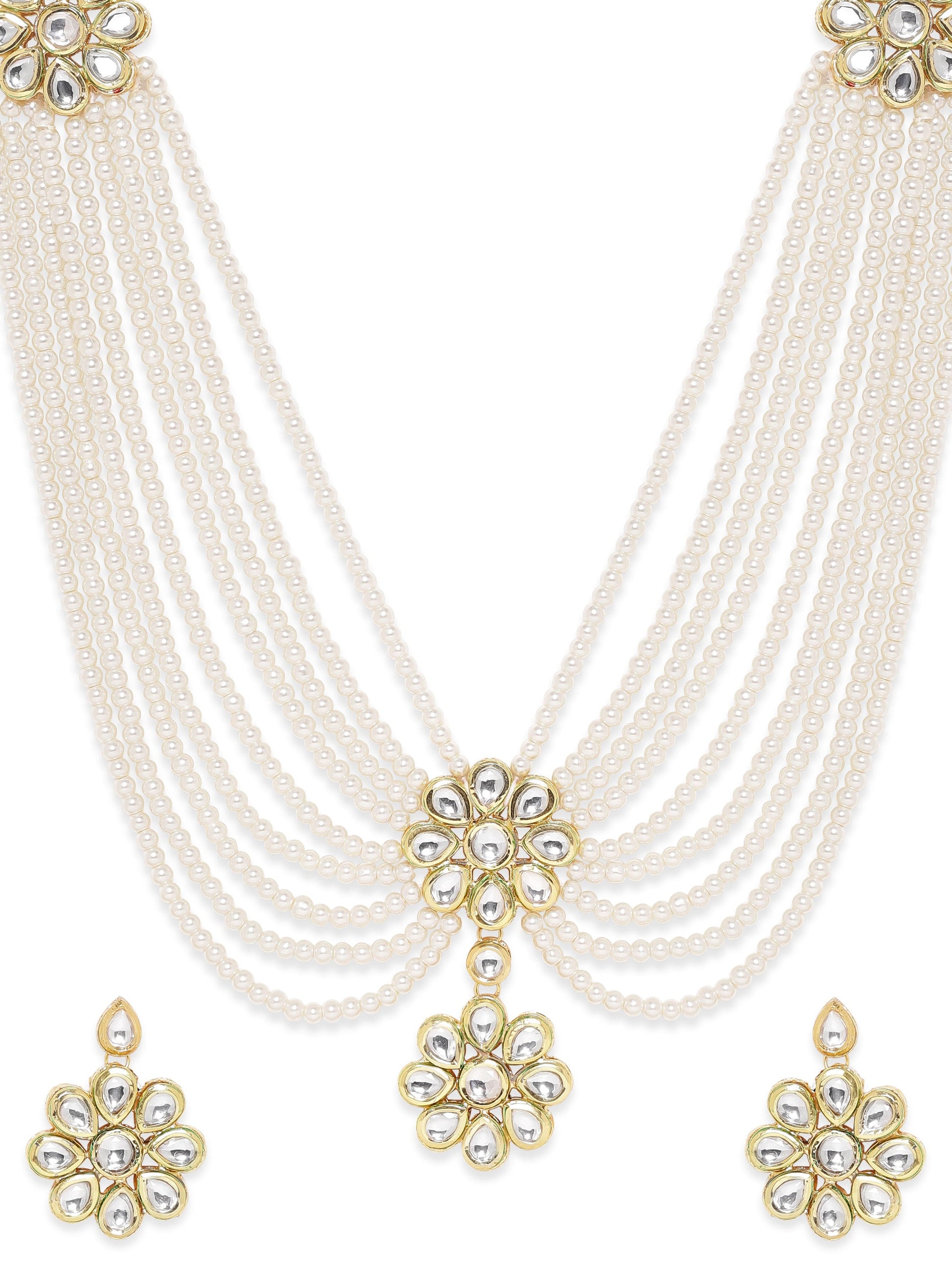 Rubans Luminous Elegance White Pearl Kundan Necklace Set