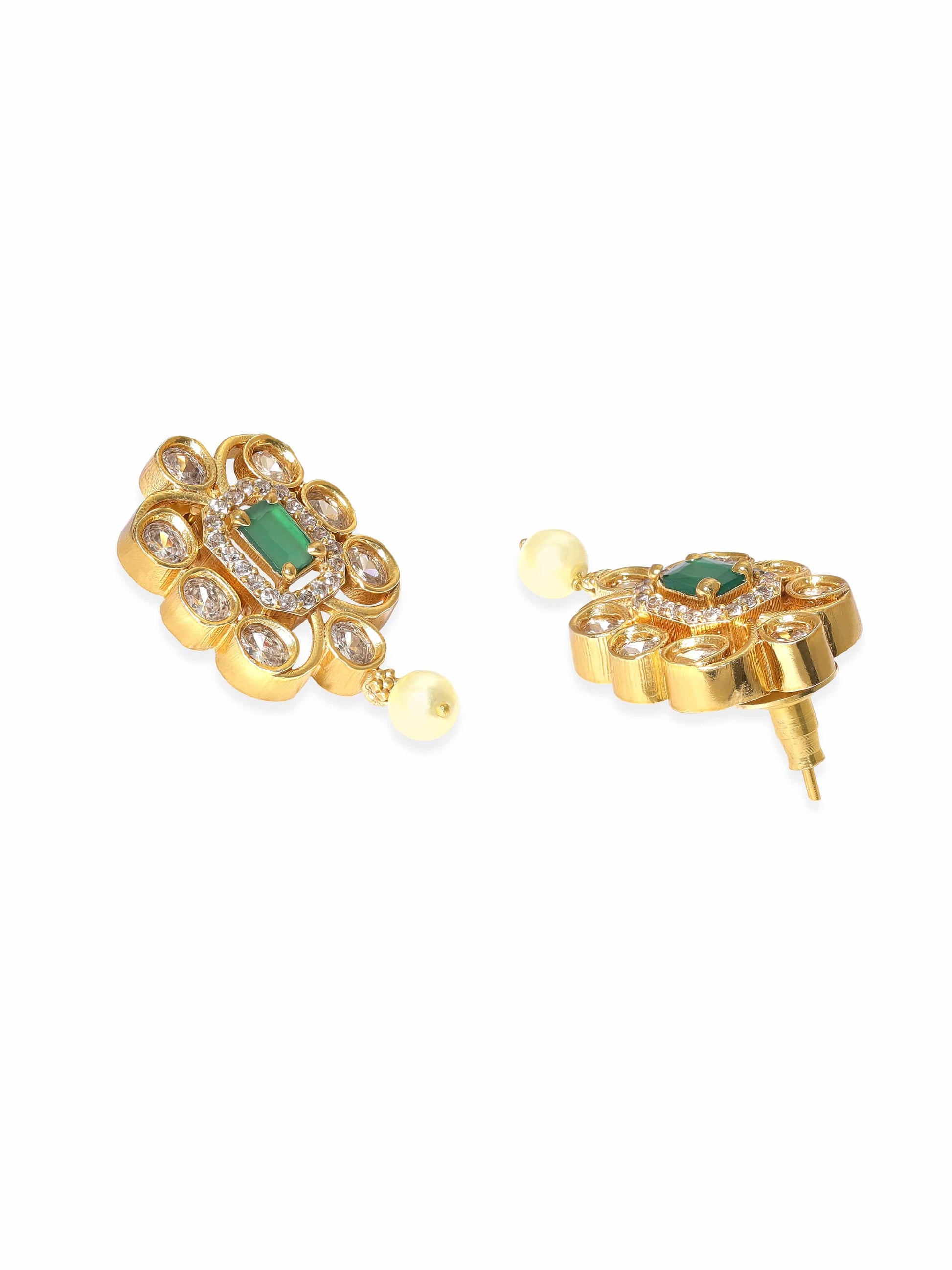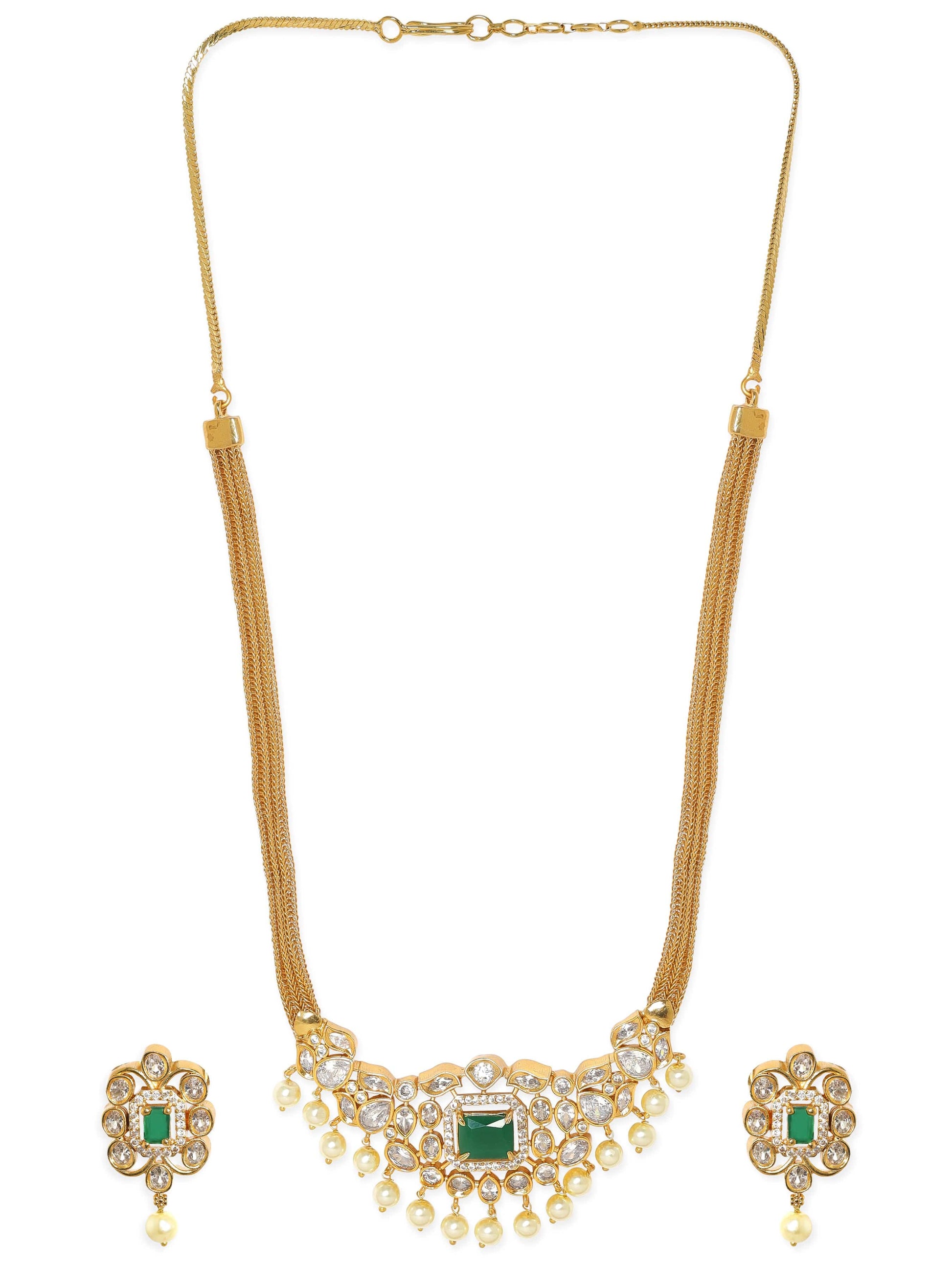 Rubans Opulent Gold-Plated AD & Green Stone Necklace Set