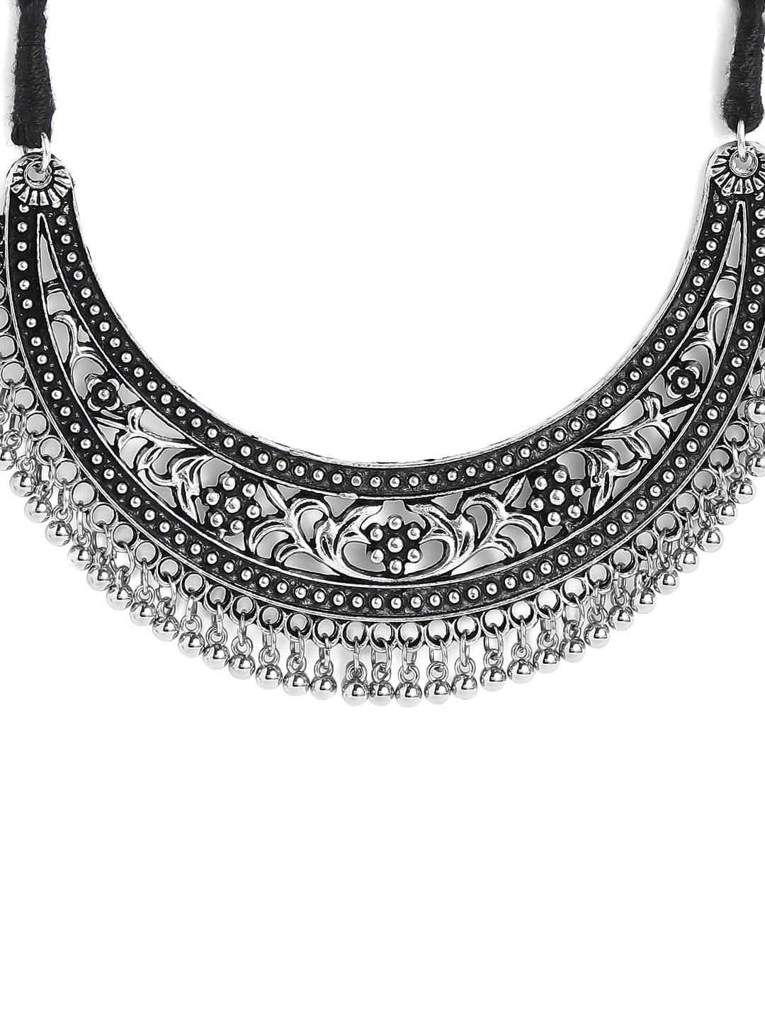 Rubans Oxidised Silver Plated Handcrafted Filligree Necklace