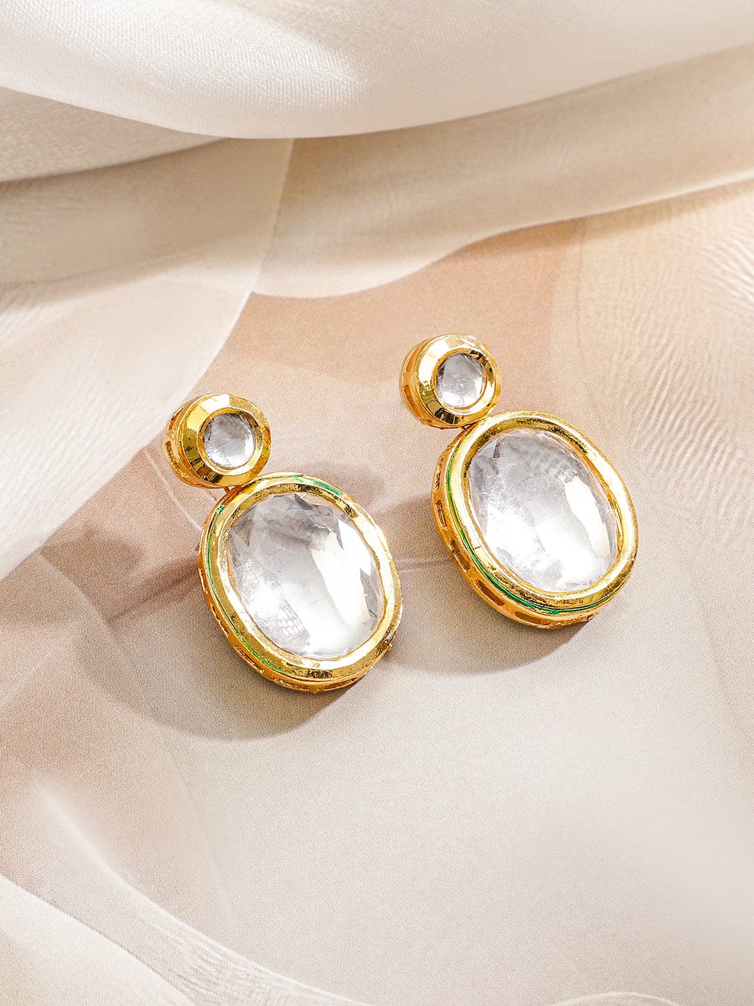Rubans 22K Gold-Plated White Kundan Studded Handcrafted Choker Necklace Set