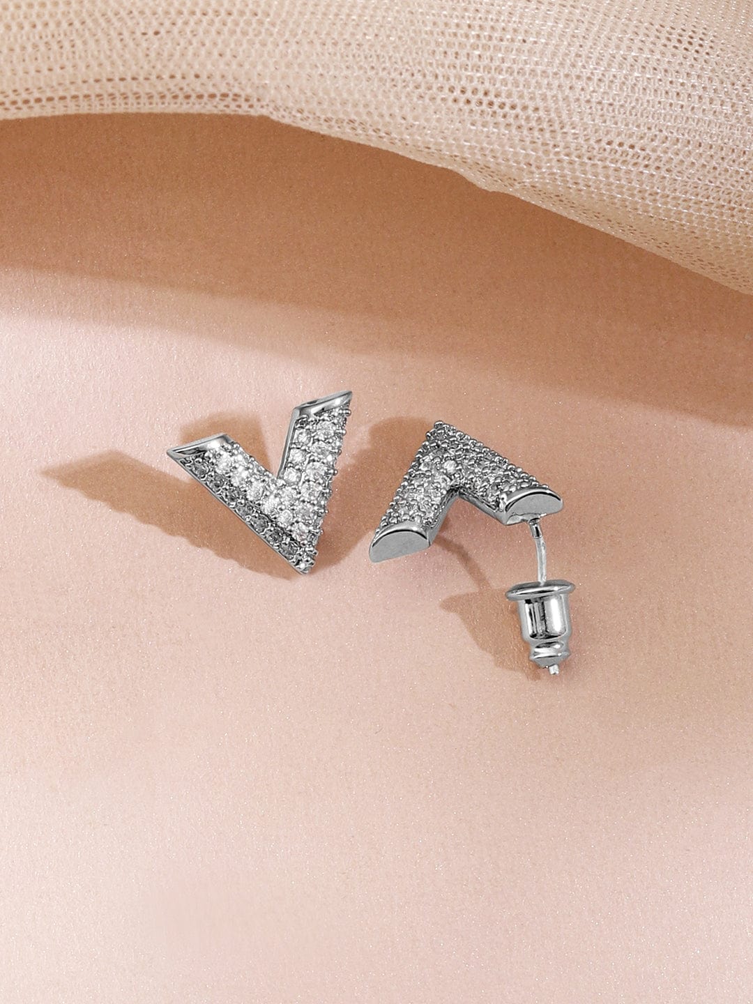 Rubans Rhodium-Plated Cubic Zirconia Studded V-Shaped Pendant Necklace Set