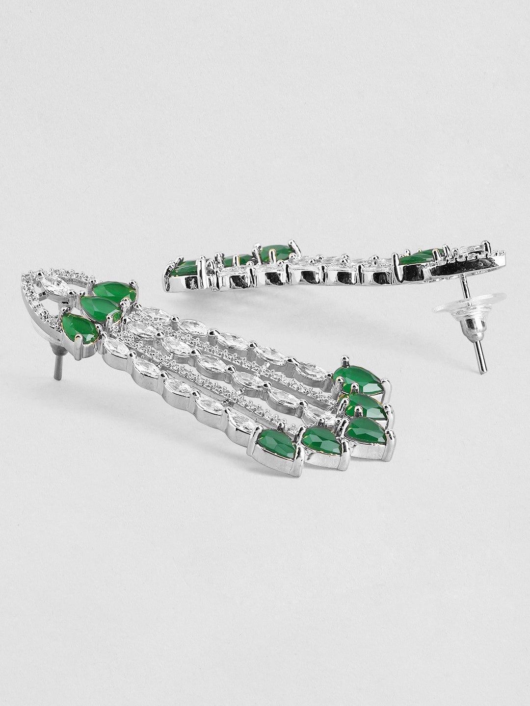Jewellery Set : Discover the elegance of Rubans Rhodium-Plated Emerald Green & White Cubic Zirconia Studded Choker Necklace Set. This piece combines quality craftsmanship with a timeless design, making it perfect for any occasion. Elevate your style effortlessly and enjoy compliments on your refined taste. A must-have addition to your jewelry collection.