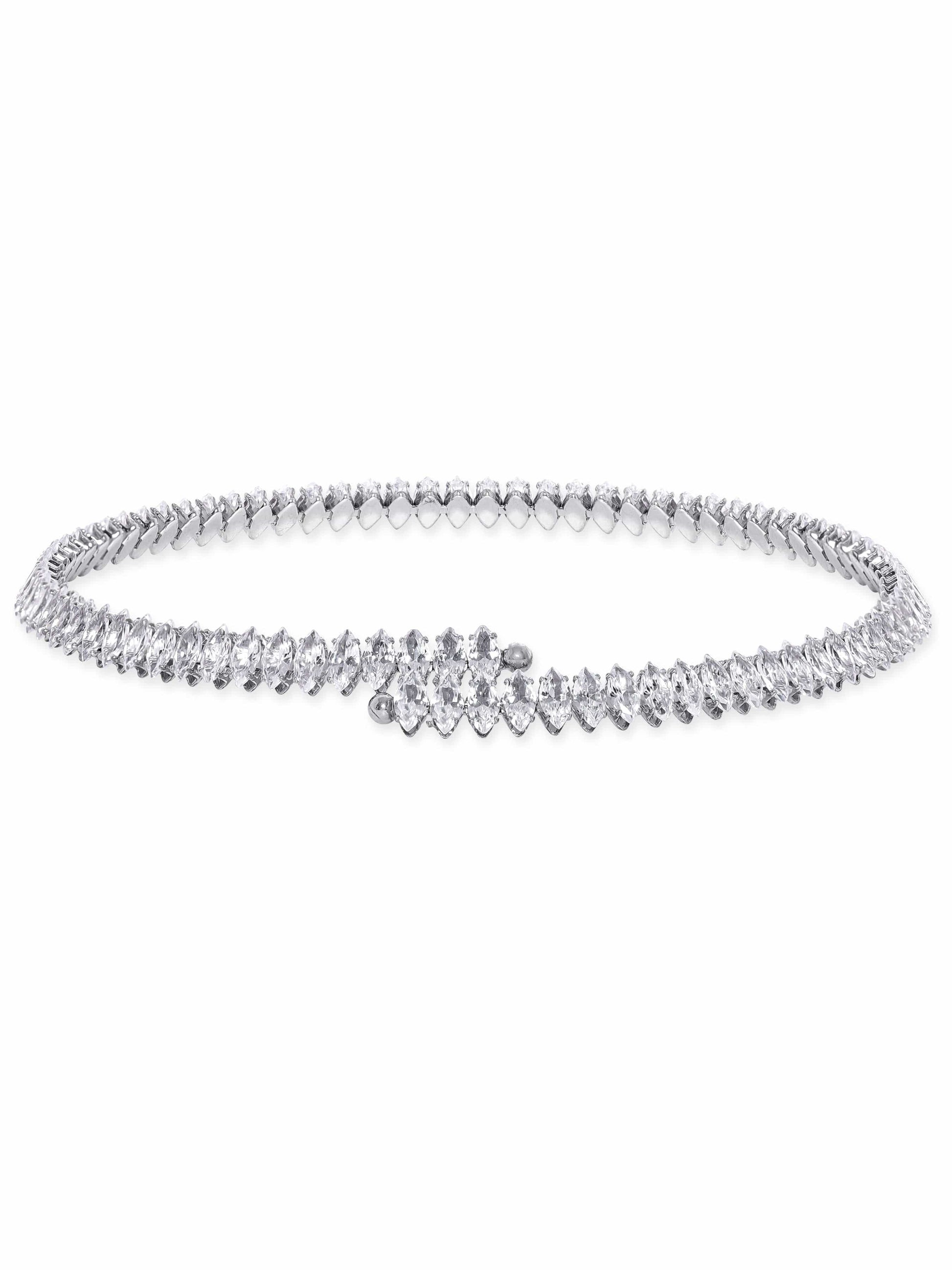 Rubans Rhodium Plated Korean Crystal studded Adjustable Choker necklace
