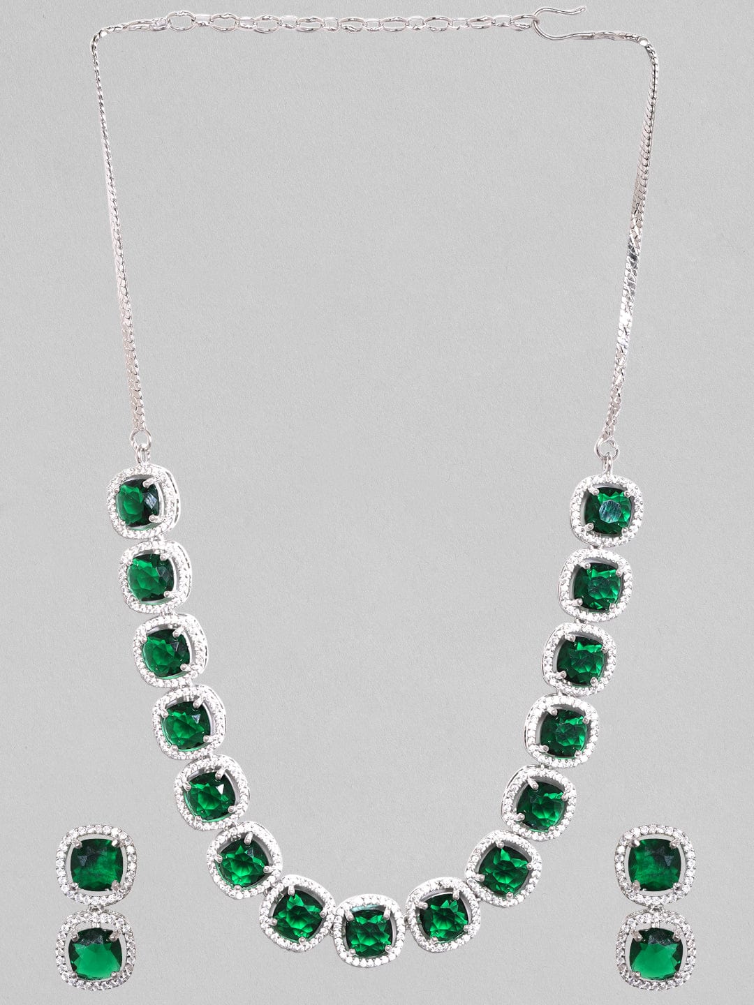 Rubans Rhodium Plated Premium White & Emerald Zircons Necklace Set.