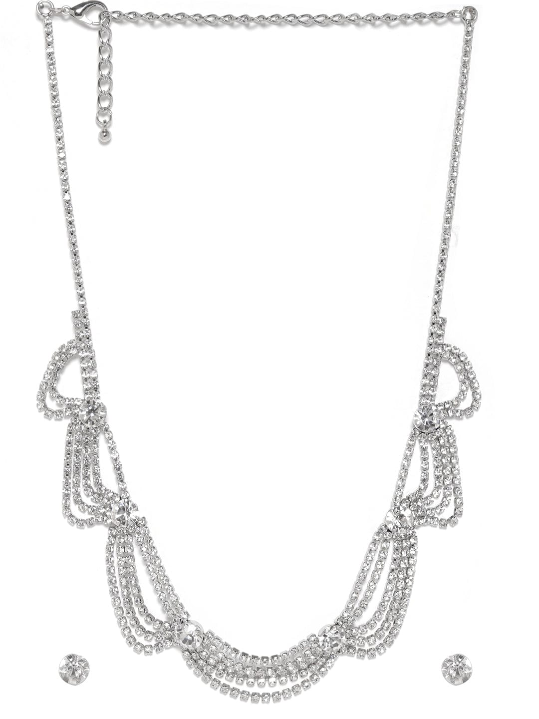 Rubans Rhodium Plated White Zirconia Studded Layered Necklace Set