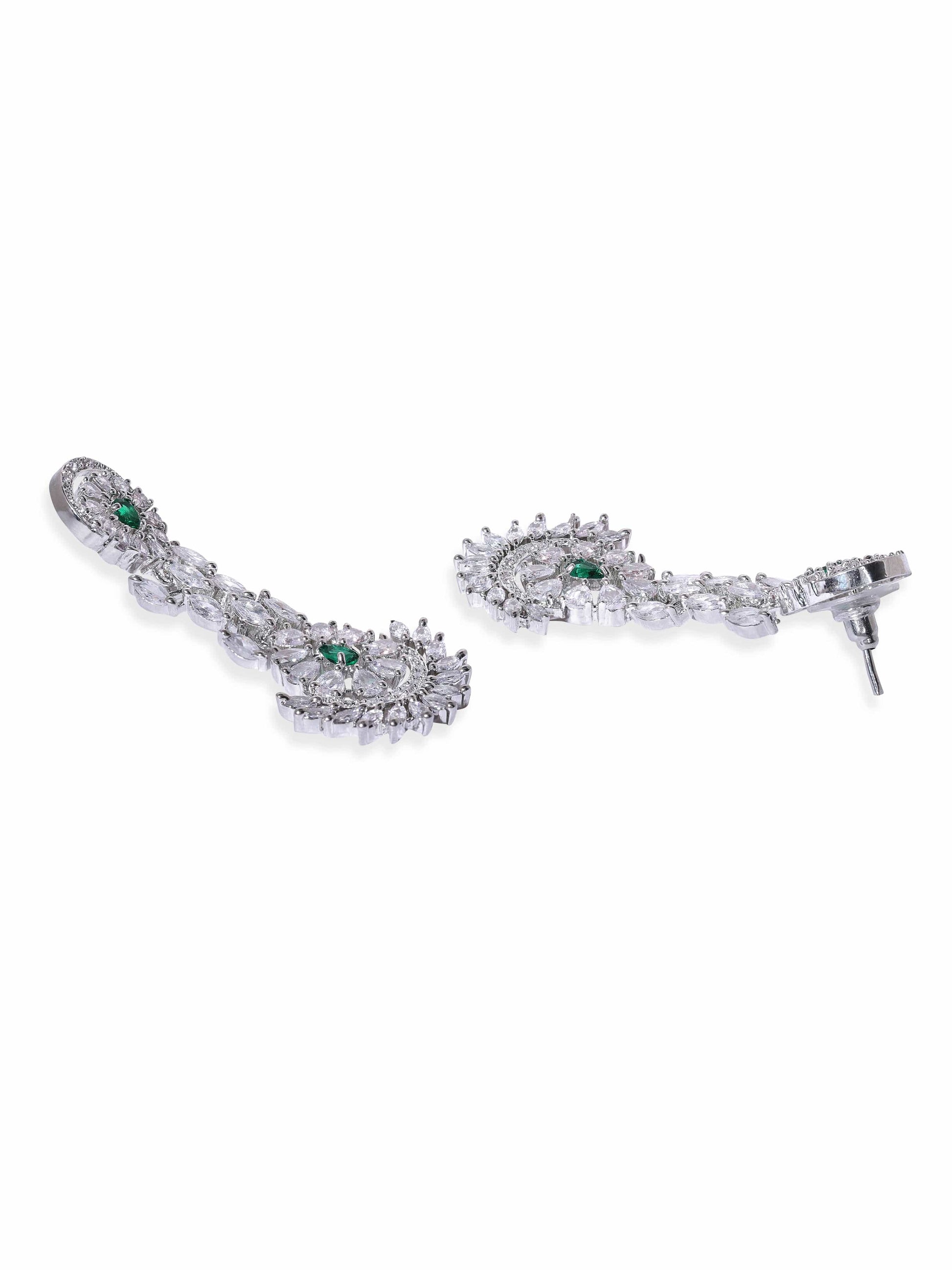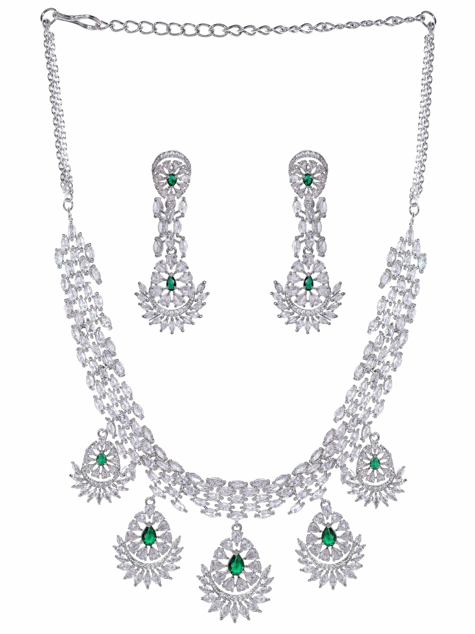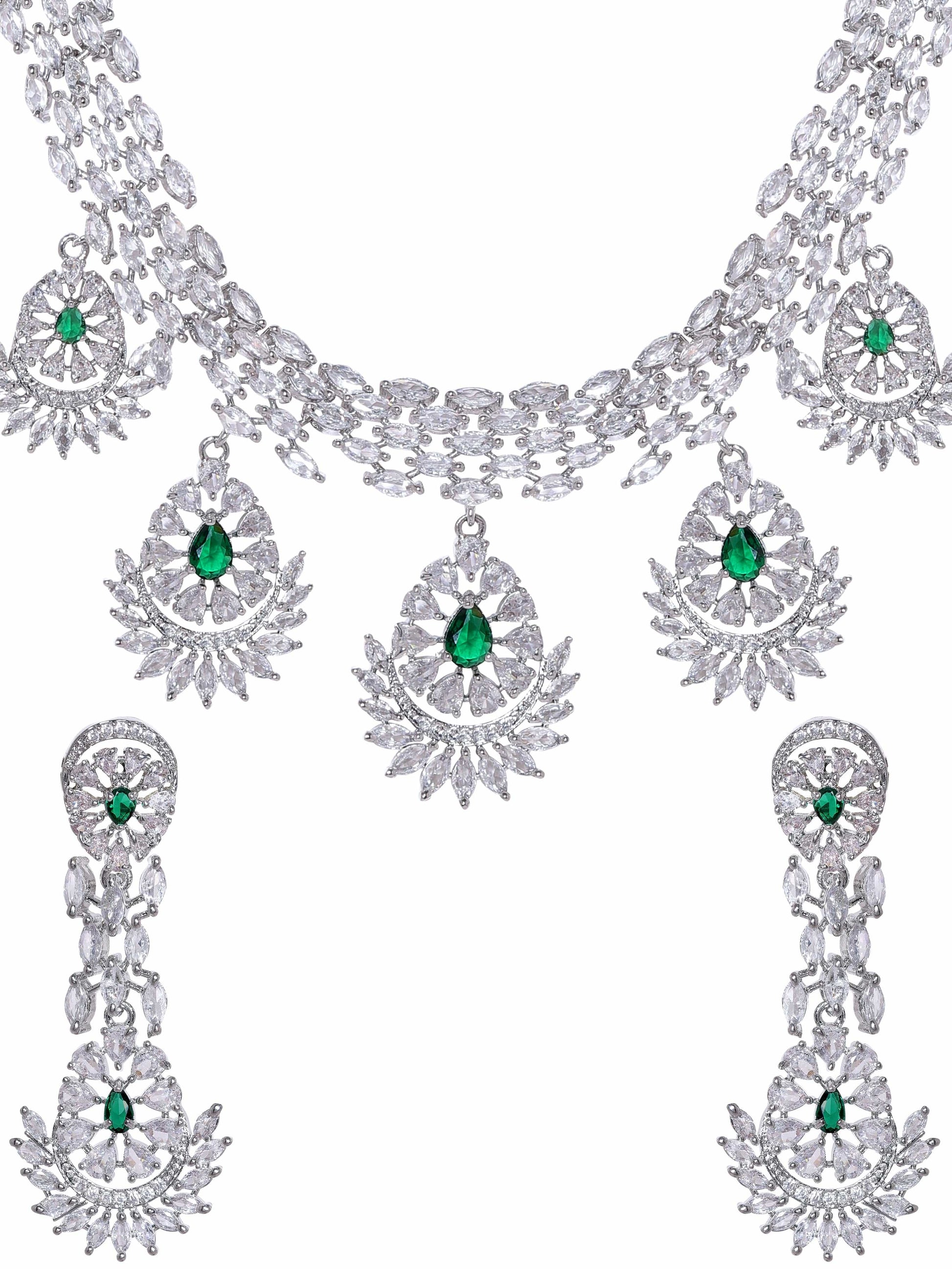 Rubans Rhodium plated Zirconia studded Statement Drop Detail Choker Necklace Set