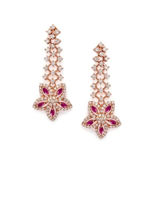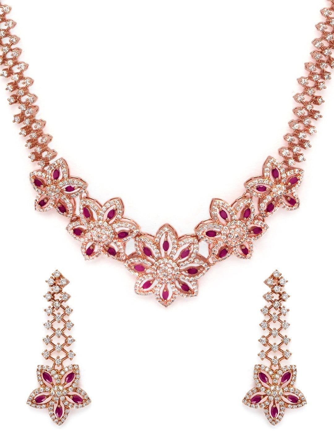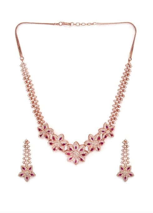 Rubans Rose Gold Plated Pleasing CZ Studded Statement Floral Necklace Set