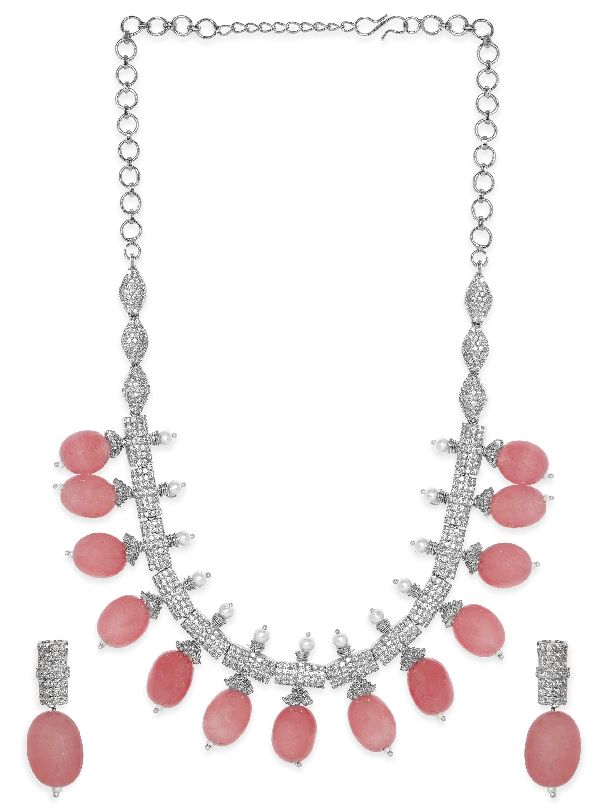 Rubans Rose Petal Elegance: Pink Beaded AD Necklace Set