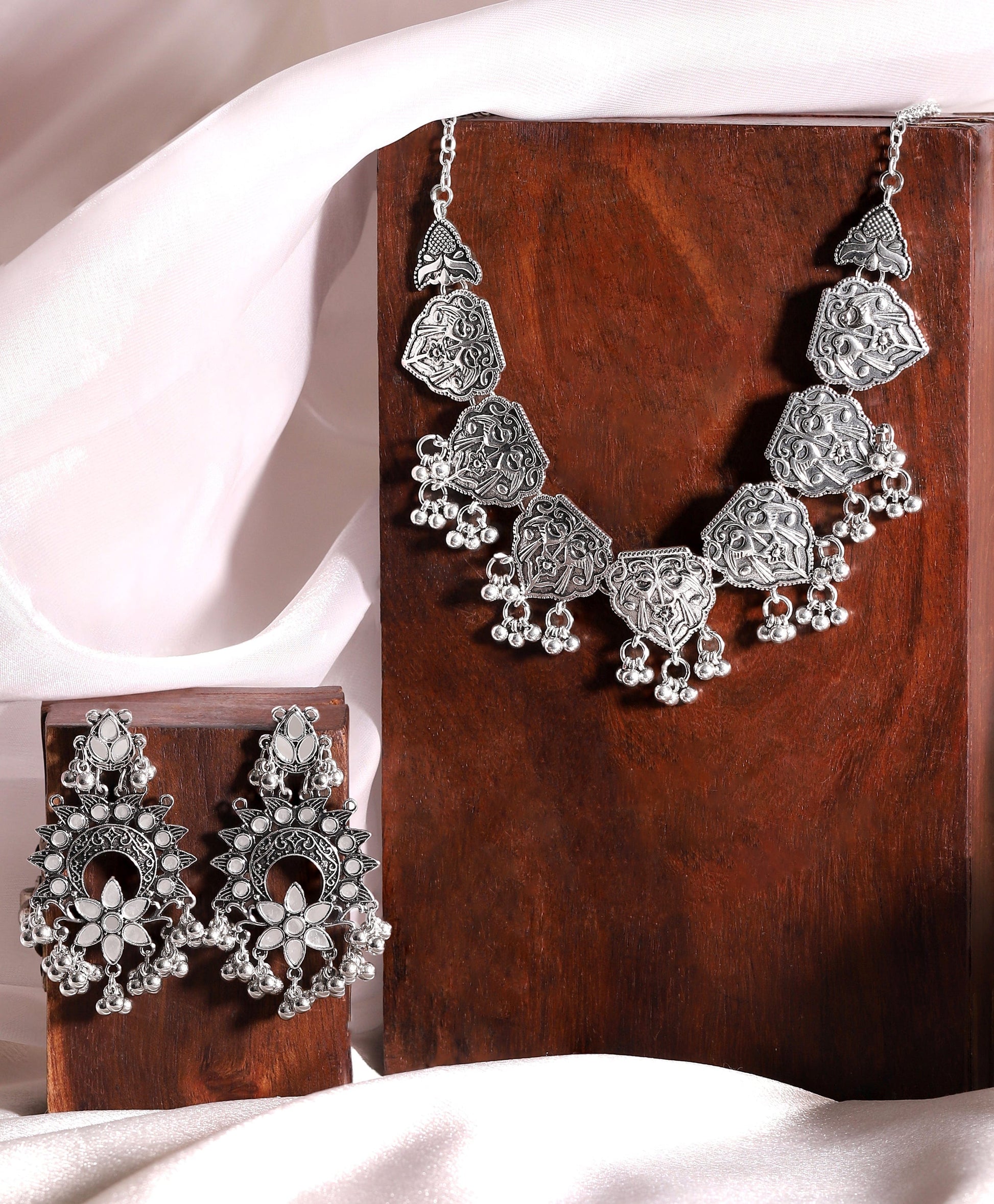 Rubans Set Of Oxidized Finish With Ghungroo Beaded Necklace And Earring Jewellery Set