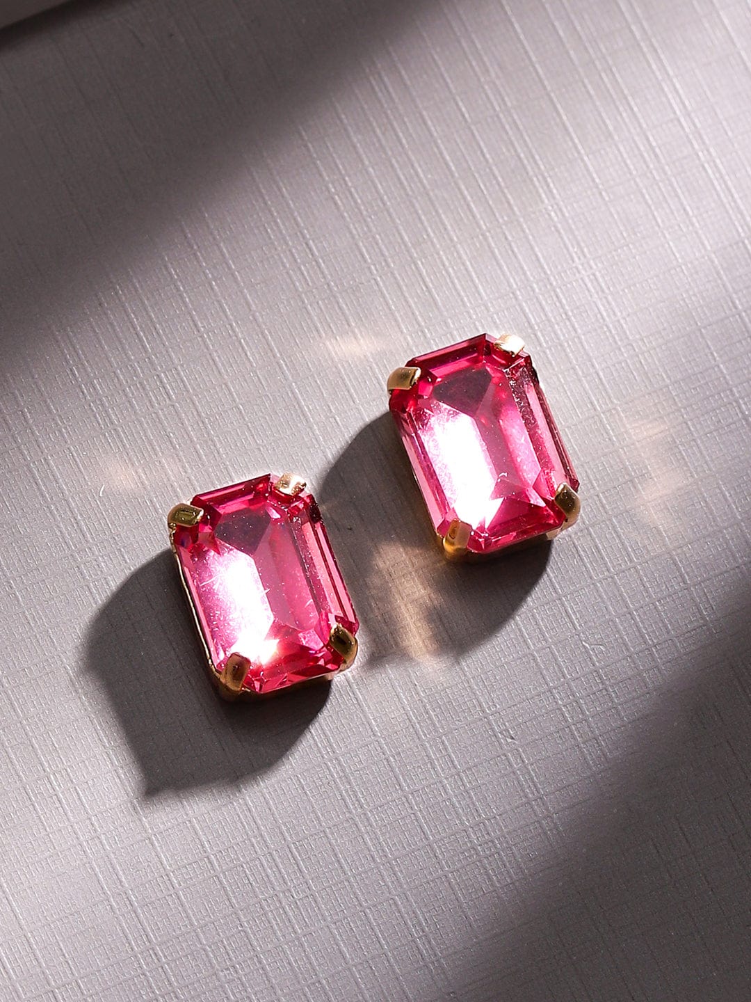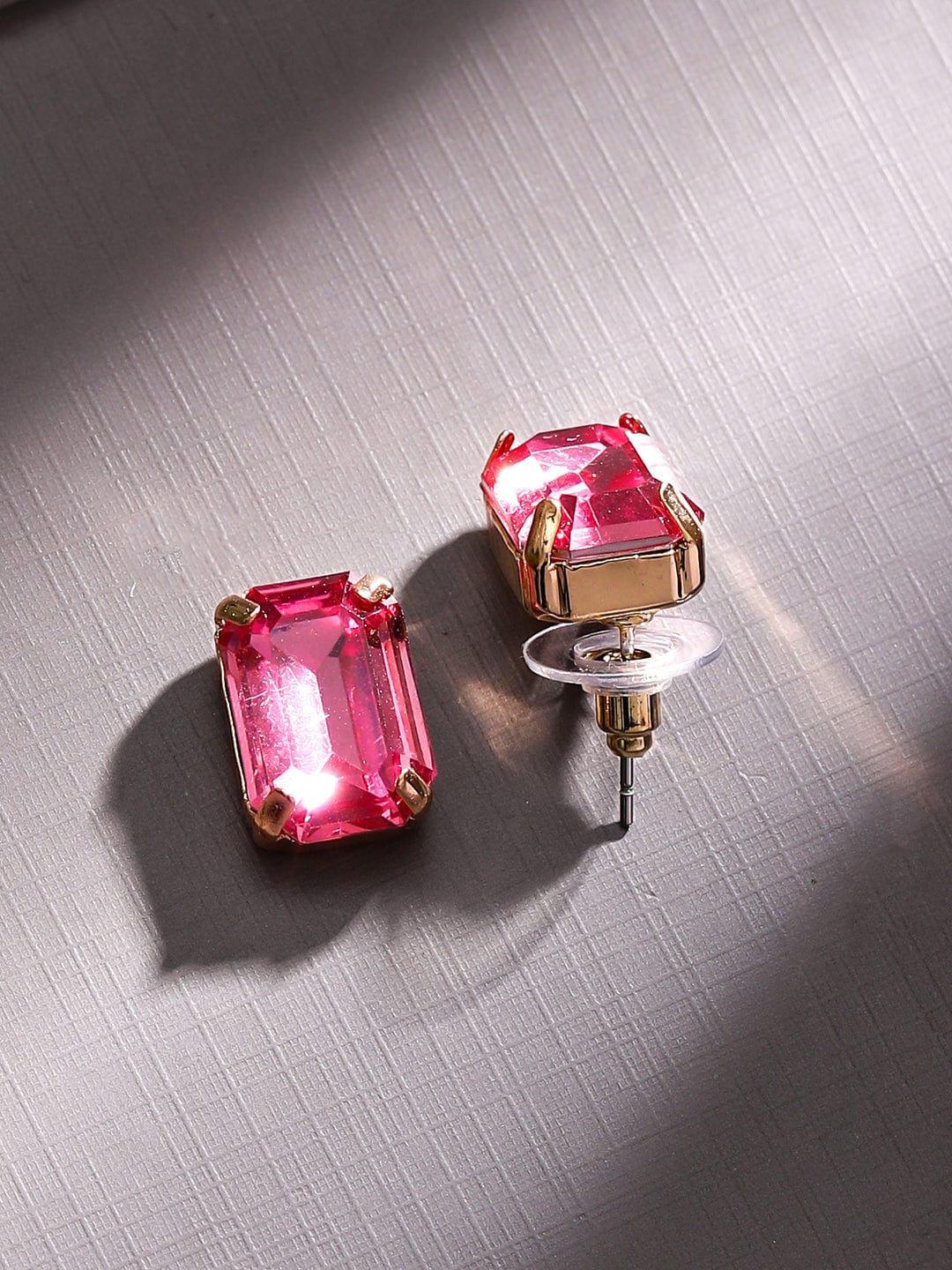 Jewellery Set : This exquisite statement necklace set is crafted in 18K gold plating, adorned with pink crystal cubic zirconia in a bold, elegant design, making it a perfect showstopper piece.