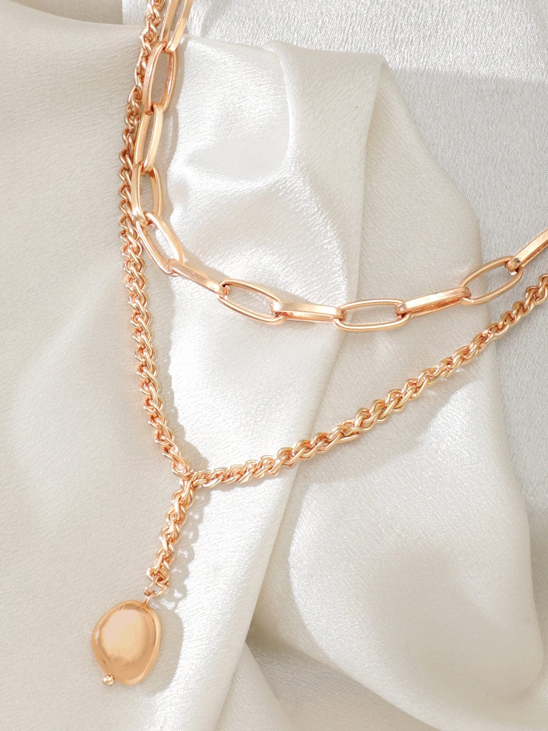 " The ""18K Gold Plated Link & Rope Chain Layered Necklace"" is a stylish and versatile accessory. This necklace features a layered design, combining link and rope chains for a dynamic and contemporary look. The 18K gold plating adds a touch of elegance and luxury to this chic piece. Whether you're dressing up for a special occasion or adding a touch of sophistication to your everyday attire, this necklace is a perfect choice. It effortlessly complements a variety of styles and outfits, making it a must-have addition to your jewelry collection."