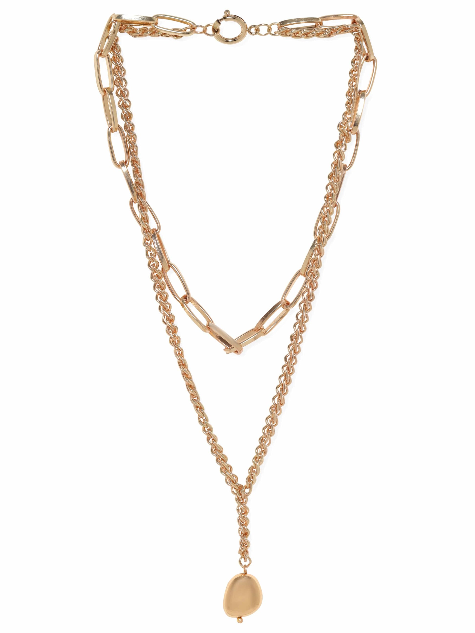 Rubans Voguish 18K GOld plated Link & Rope Chain layered necklace