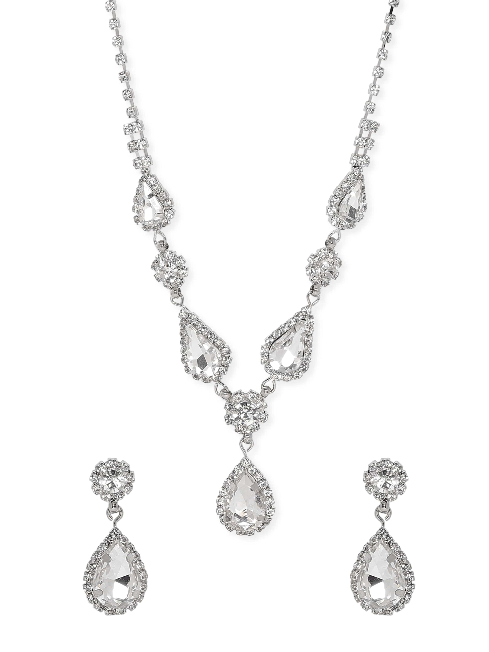 Rubans Voguish Rhodium Plated Crystal Studded Statement Pendant Necklace Set